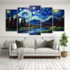 Cinco Telas En Bastidor Acuarela Mural Abstracto Reinterpretación Noche Estrellada De Van Gogh
