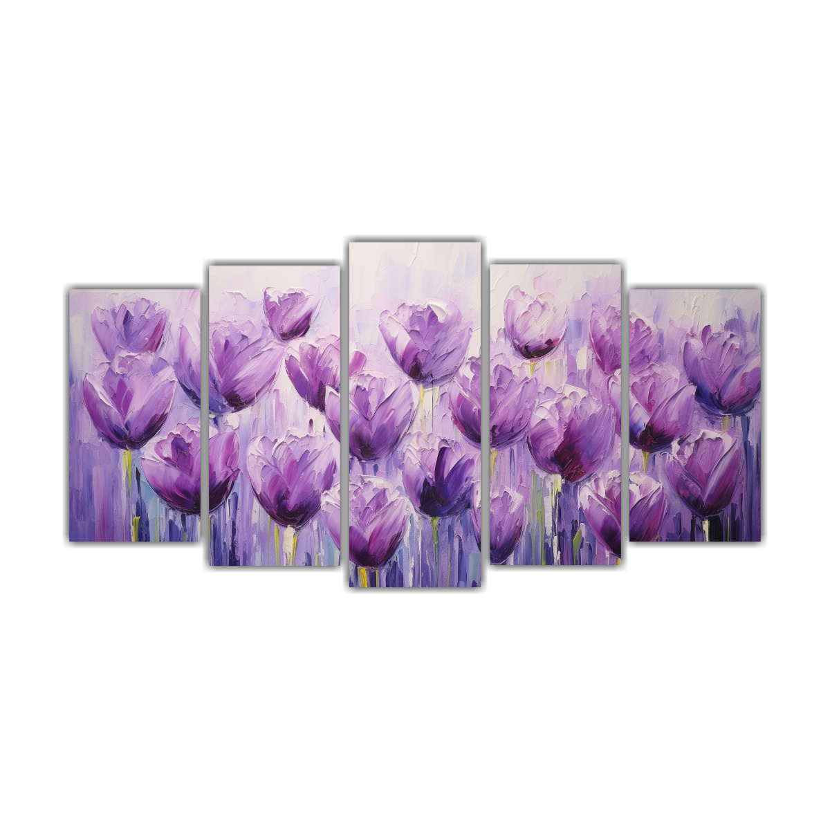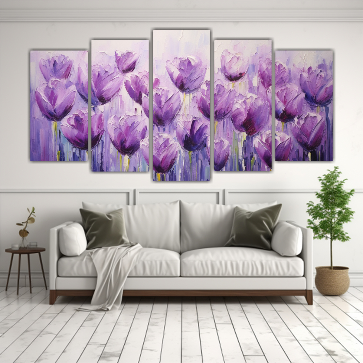 Cinco Telas En Bastidor Decorativo Adorable Pintura De TULIPANES Morados En Lienzo Al Estilo De Pinturas Decorativas