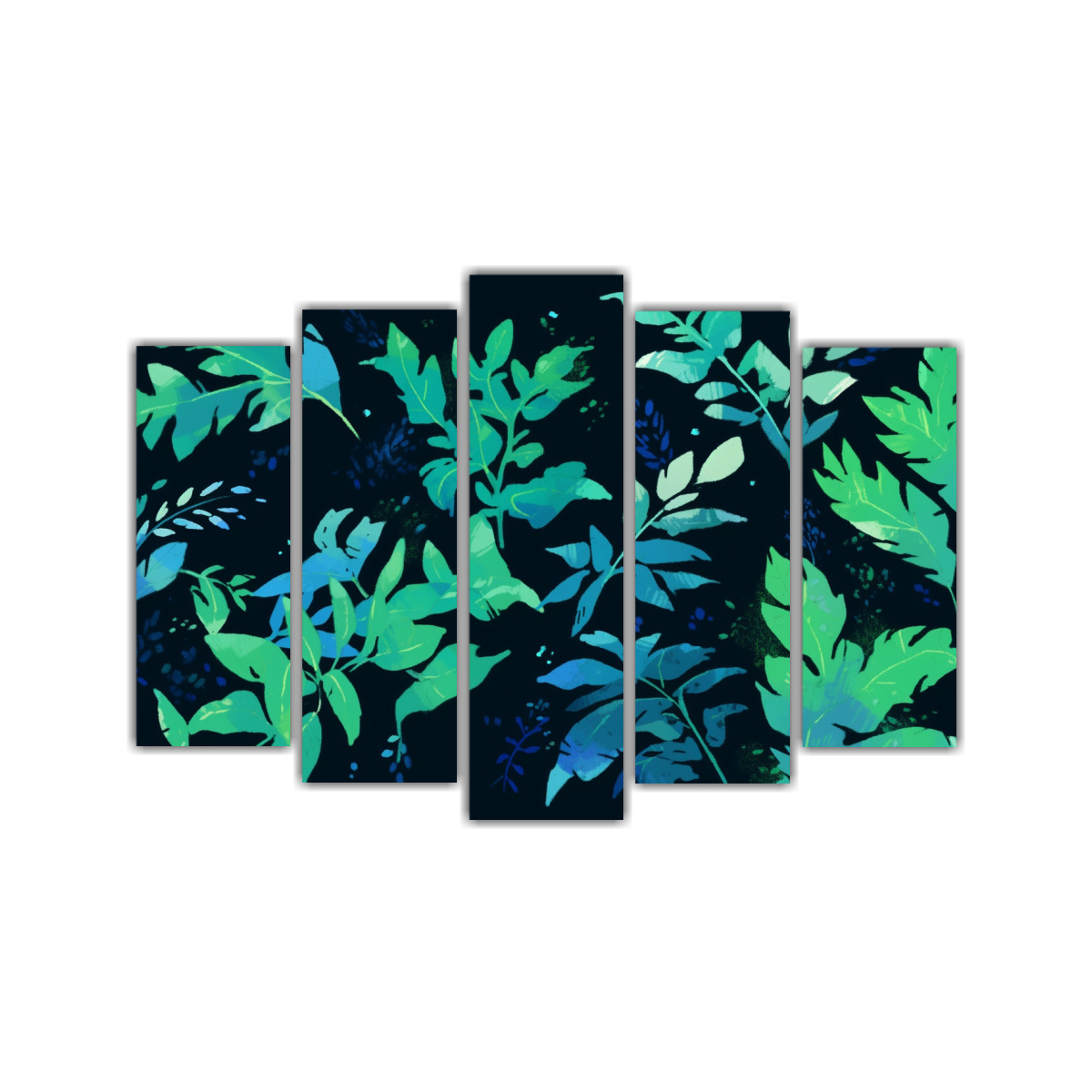 Cinco Telas En Bastidor Dibujo Relieve Colores Verde Y Azul Estilo Neonoir