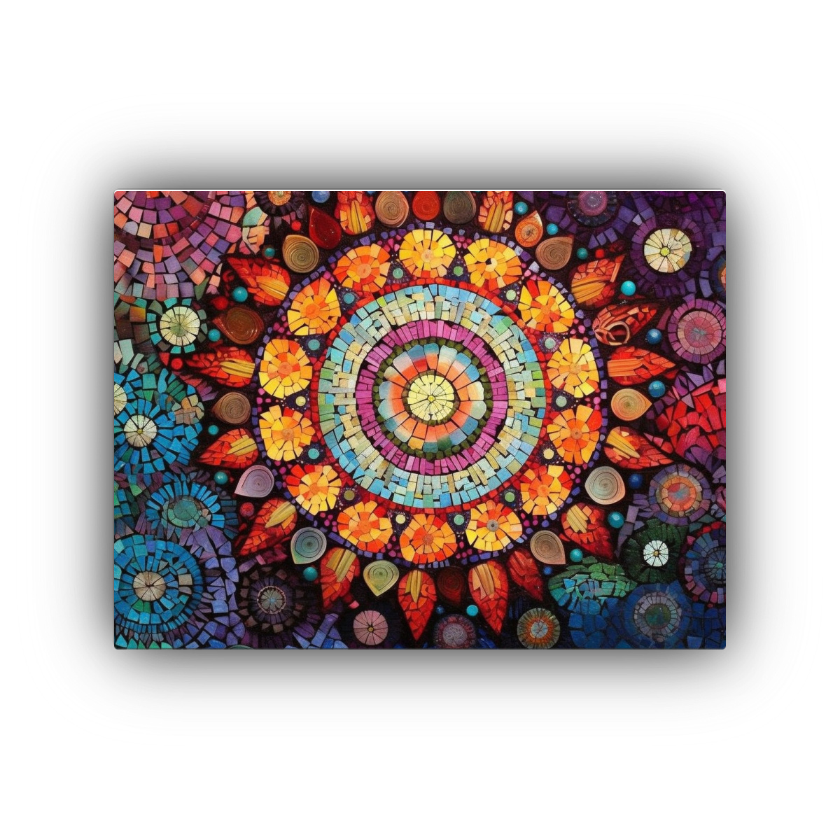 Este mandala collage presenta una mosaico de mandalas en una combinación de tonos Coral, Azul Marino grisaceo, Turquesa, Carmesí, Menta, Gris, Chocolate y Plateado DecoCuadros te ofrece la mejor calidad del mercado con entregas rápidas y gratuitas en Santiago Envíos express a regiones disponibles