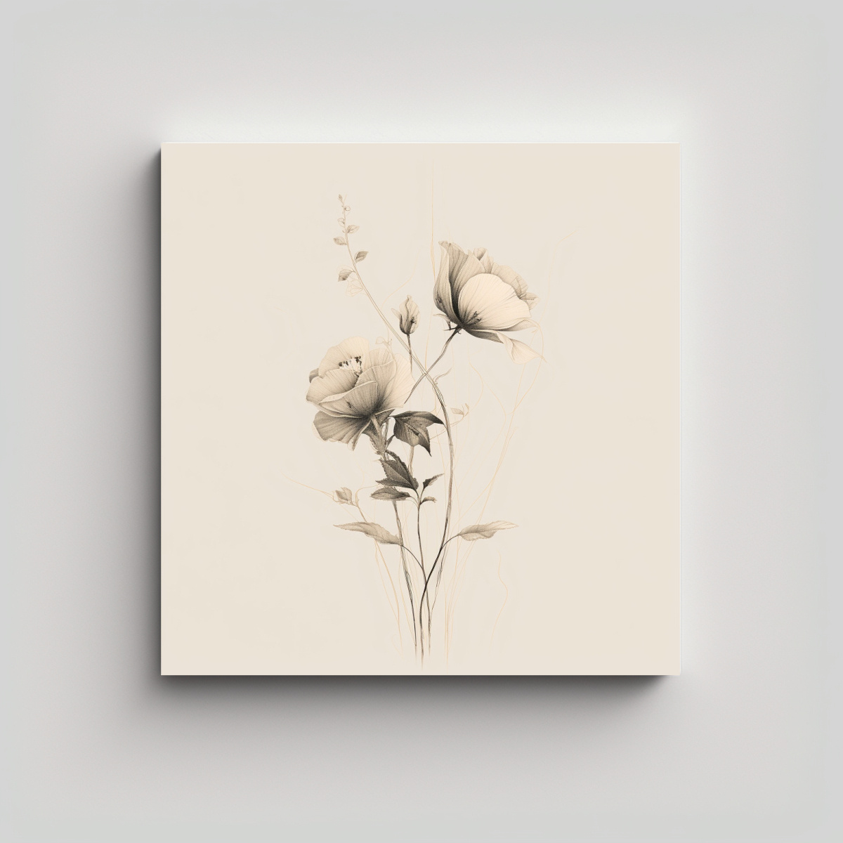 Composición Acuarela Delicada Arte Lineal Botánica Elegante