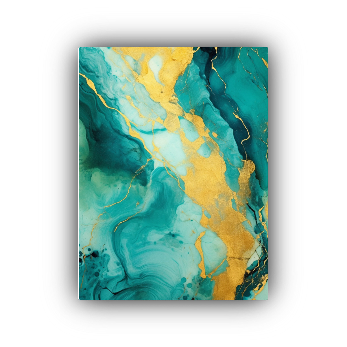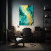 Este cuadro Composición Dibujo Teal and Gold Abstract Texture Clipart Alcohol Ink en tonos verde azulado, coral y turquesa, es ideal para darle un toque sofisticado y moderno a tu sala de estar Combínalo con muebles de color blanco o crema para resaltar su belleza y crear un ambiente relajante Colócalo sobre un sofá o en una pared vacía para crear un punto focal y transformar tu espacio en un lugar acogedor y elegante