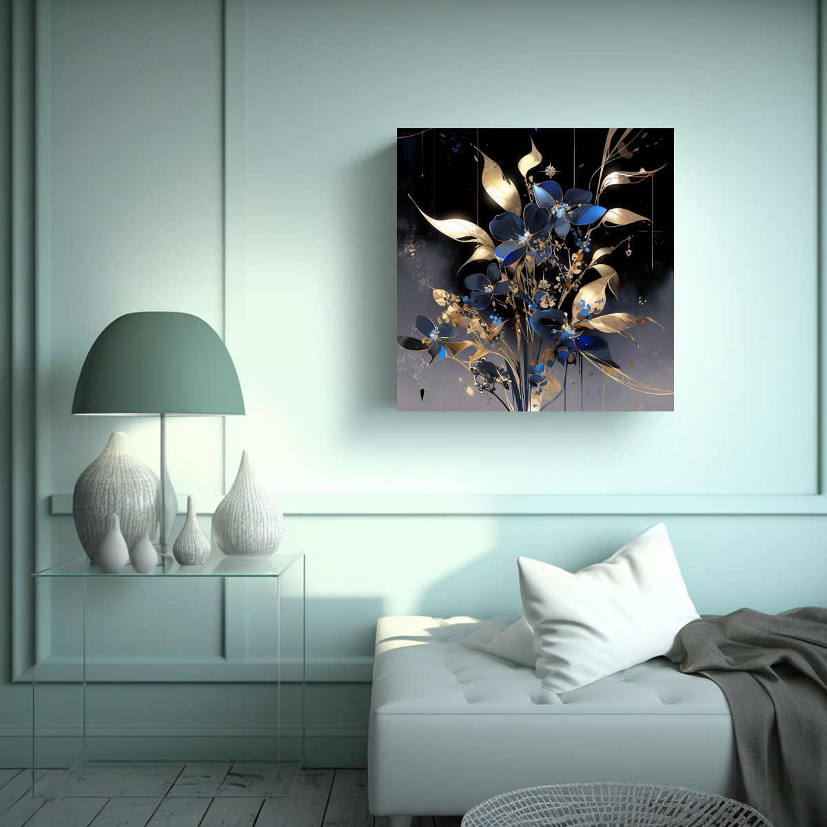 Este cuadro es perfecto para complementar una decoración moderna y sofisticada Te recomendamos colocarlo en el salón principal o en un estudio, donde sus tonos oro y azul destacarán y crearán un ambiente elegante y lleno de estilo