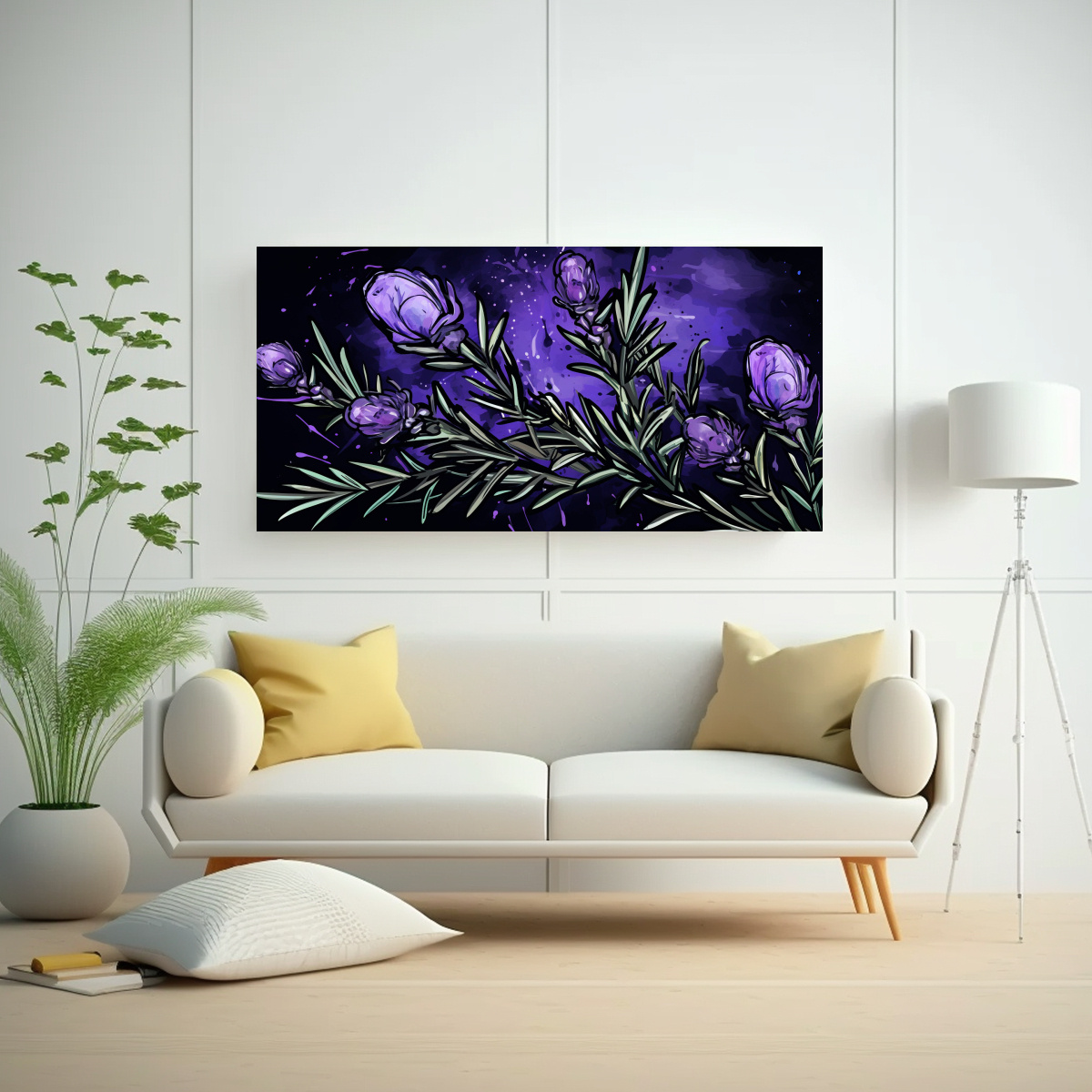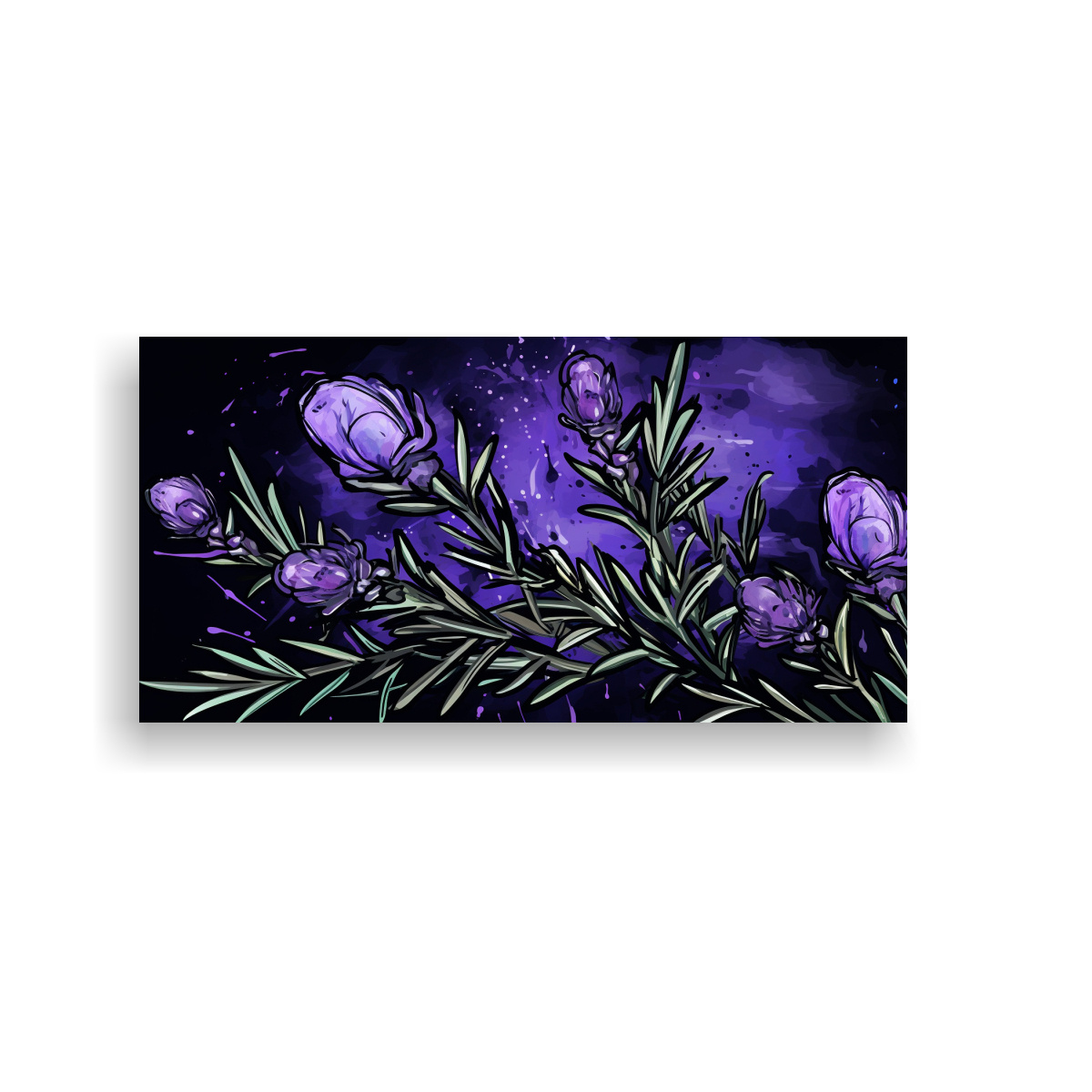 DecoCuadros te ofrece el cuadro ‘Composición Horizontal de Rosmarinus en Colores Púrpura y Negro con Atmósfera Neonoir’ con diseños exclusivos y entrega rápida y gratuita en Santiago