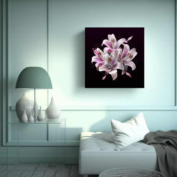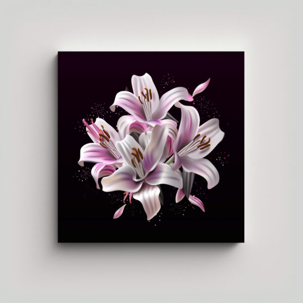 Composición Vanguardista De Lirios Morados Y Blancos 3D Metálicos