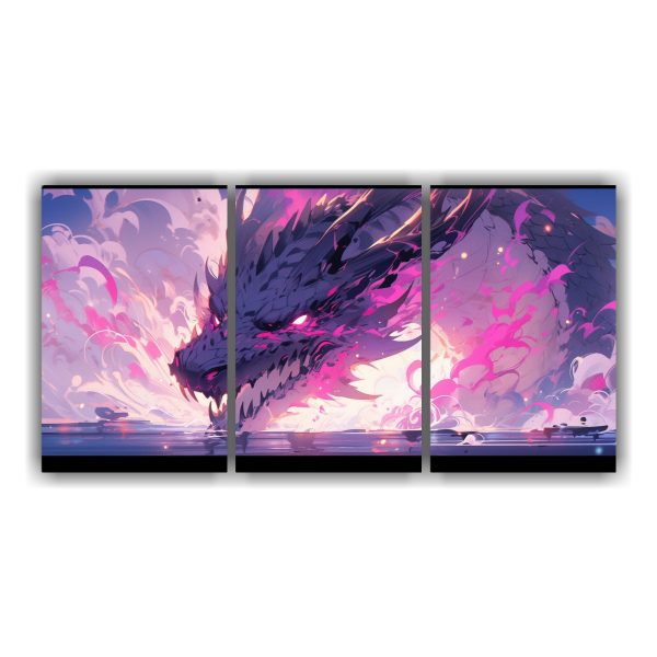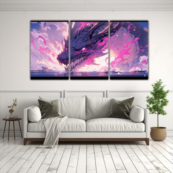 Para resaltar la elegancia y dramatismo de este cuadro, te recomendamos colocarlo en una pared de tonos neutros, como blanco o gris claro, para que los colores del dragón morado y rosa brillen con intensidad Combínalo con muebles en tonos beige o lila para crear una atmósfera armoniosa y moderna