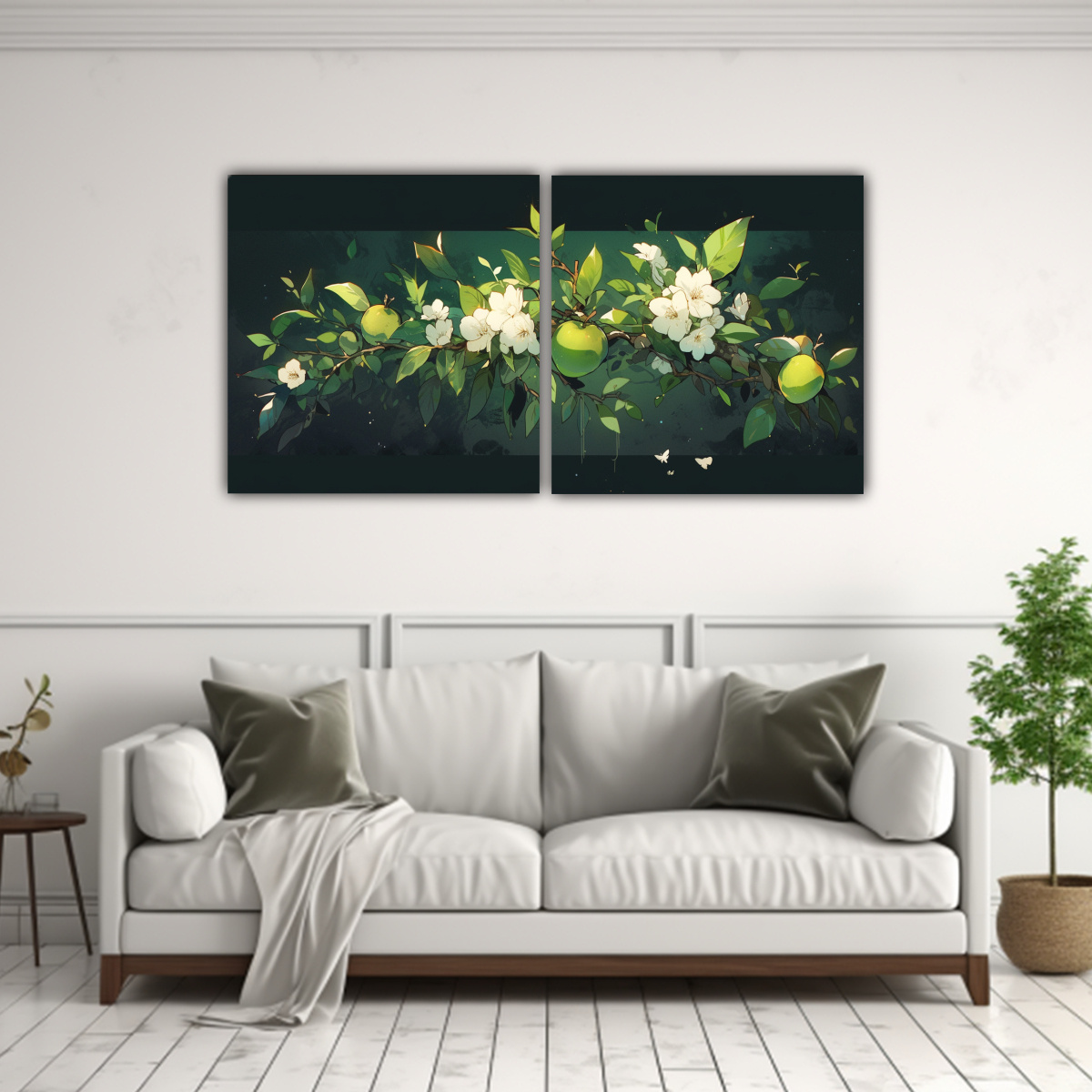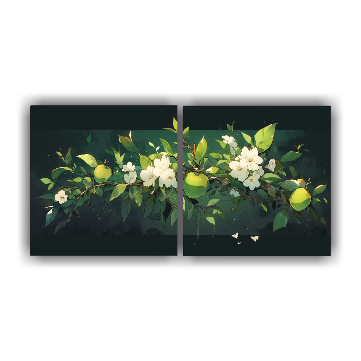 Composiciones Cuadro Atractiva Árbol Manzana En Colores Verdes Atmosfera Neonoir Neo Pop