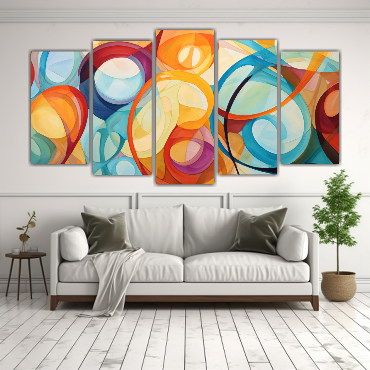 Decora tus espacios con el cuadro ‘Cinco Canvas Decoración multicolor Whirling abstract patterns reminiscent of Kandins’ Impreso en tela de alta calidad con bastidores de madera, este cuadro ofrece diseños exclusivos y colores vibrantes como carmesí, verde azulado, plateado, coral, turquesa, azul marino grisáceo y gris Nuestros cuadros destacan por su excelente calidad y precios económicos en el mercado Realizamos entregas rápidas y gratuitas en Santiago, y envíos express a distintas regiones