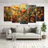 Este cuadro de árboles frutales pintura abstracta estilo Estilo óleo es perfecto para decorar tu sala de estar Puedes colocarlo sobre un sofá de tonos neutros, creando un contraste que resaltará aún más los colores vibrantes de la pintura También puedes complementarlo con cojines en tonos coral, carmesí o plateado Esta combinación le dará a tu sala un toque moderno y sofisticado ¡Anímate a decorar tus espacios con este cuadro y sorprende a tus invitados!