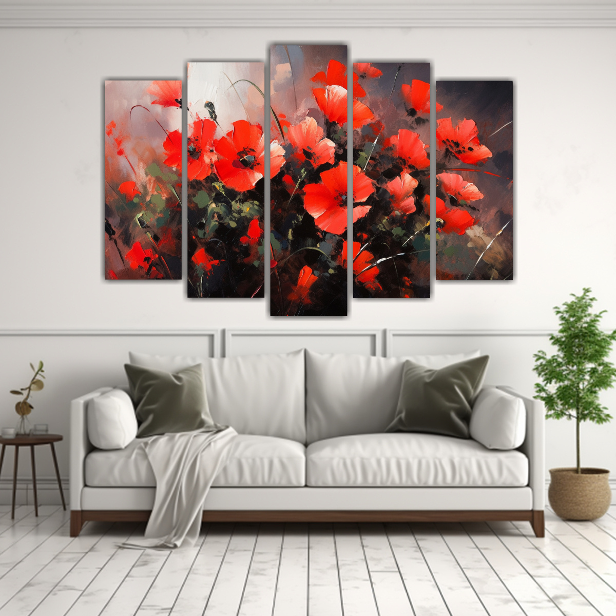 Composiciones Florales En Lienzo En Rojo Y Negro