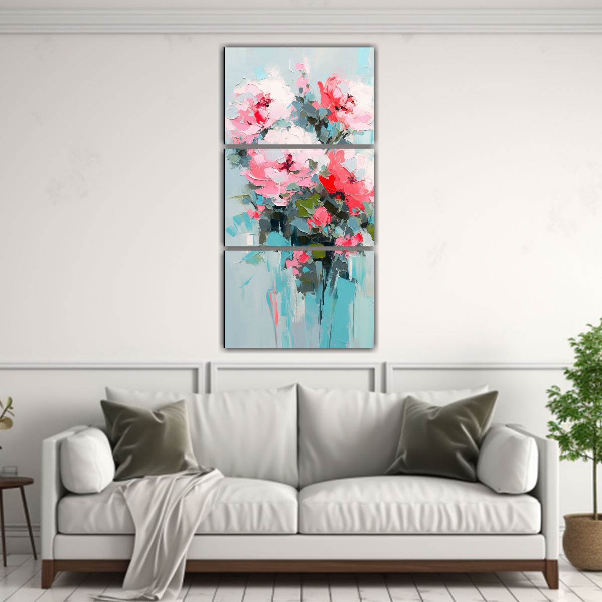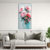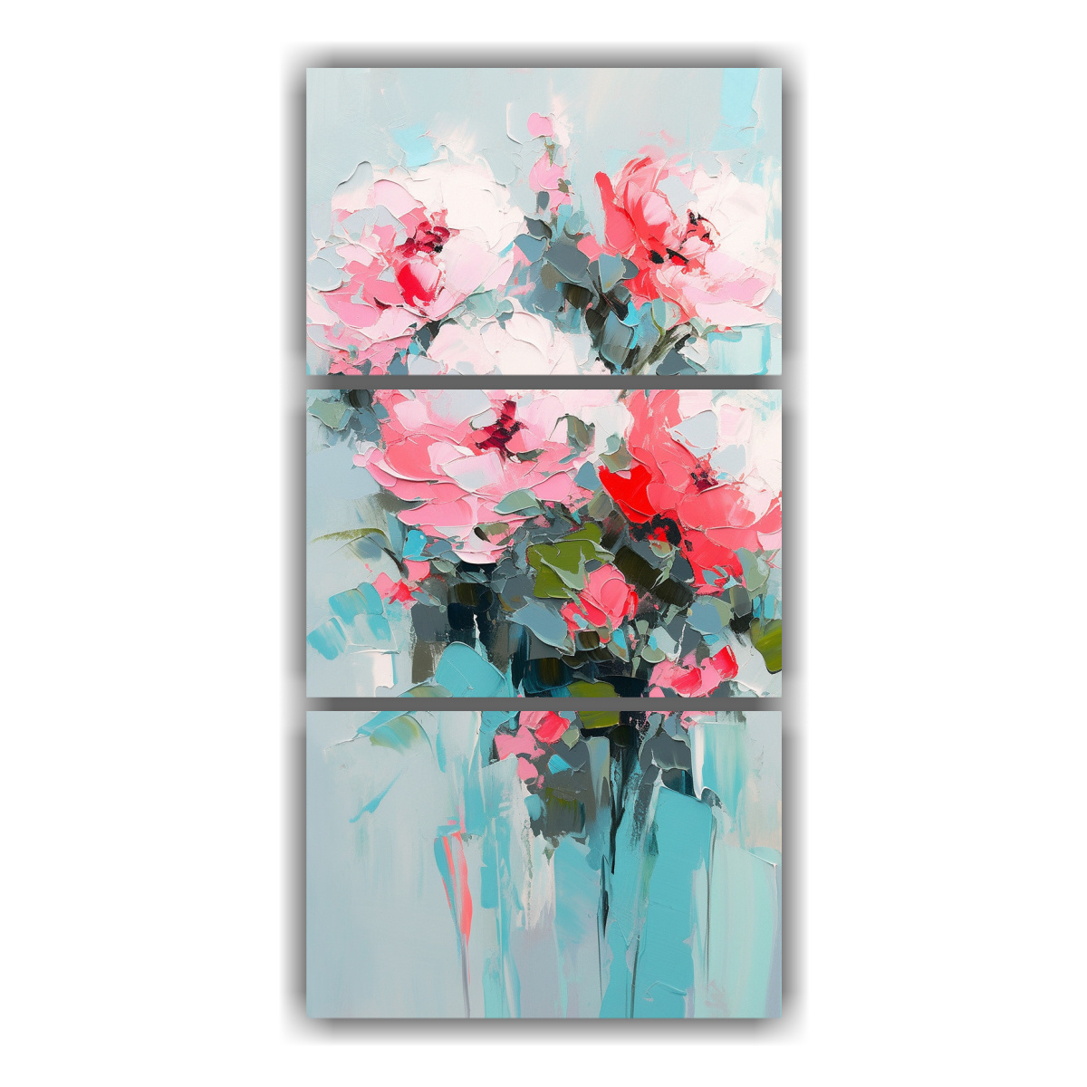 Composiciones Vintage En Turquesa Y Rosa Con Flores En Lienzo