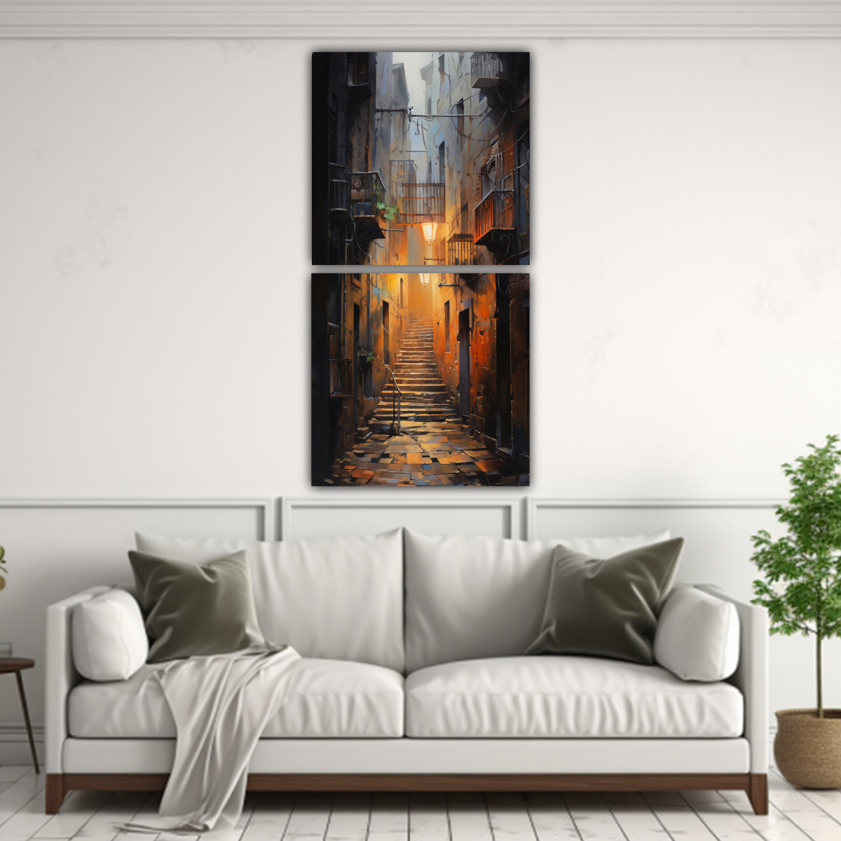 Conexiones Serendípicas En Callejones Abstractos: Set De 2 Lienzos Exuberantes
