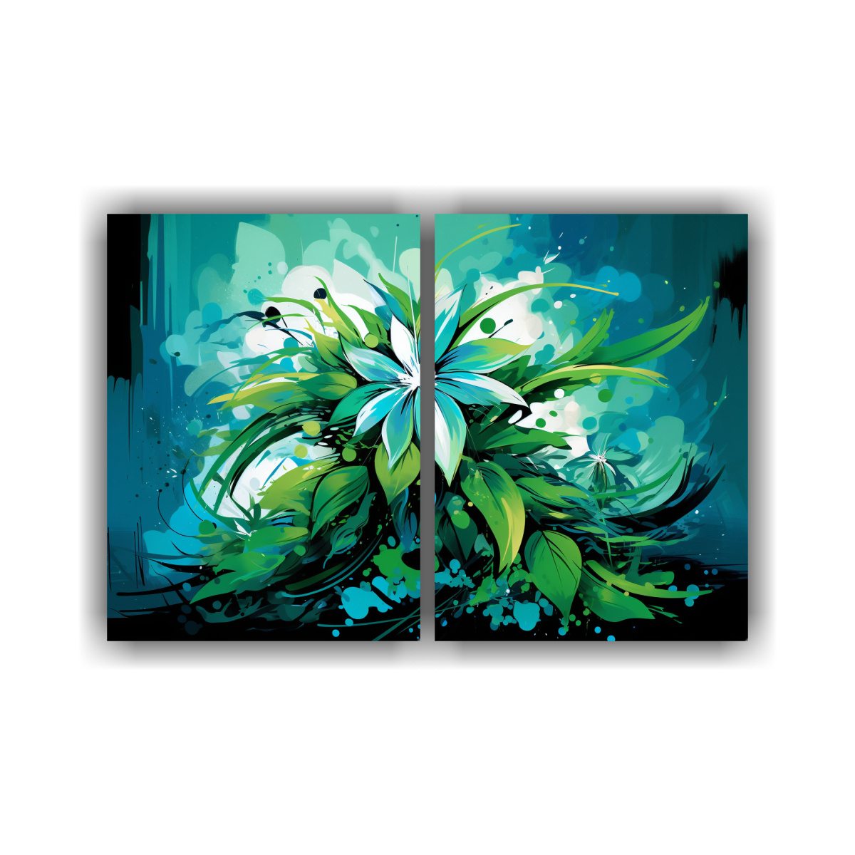 Este conjunto de 2 artes en tonos verde y azul es ideal para realzar la elegancia de tu sala de estar Colócalos en una pared blanca para que resalten y creen una atmósfera moderna y sofisticada ¡Dale un toque neonoir a tu hogar!