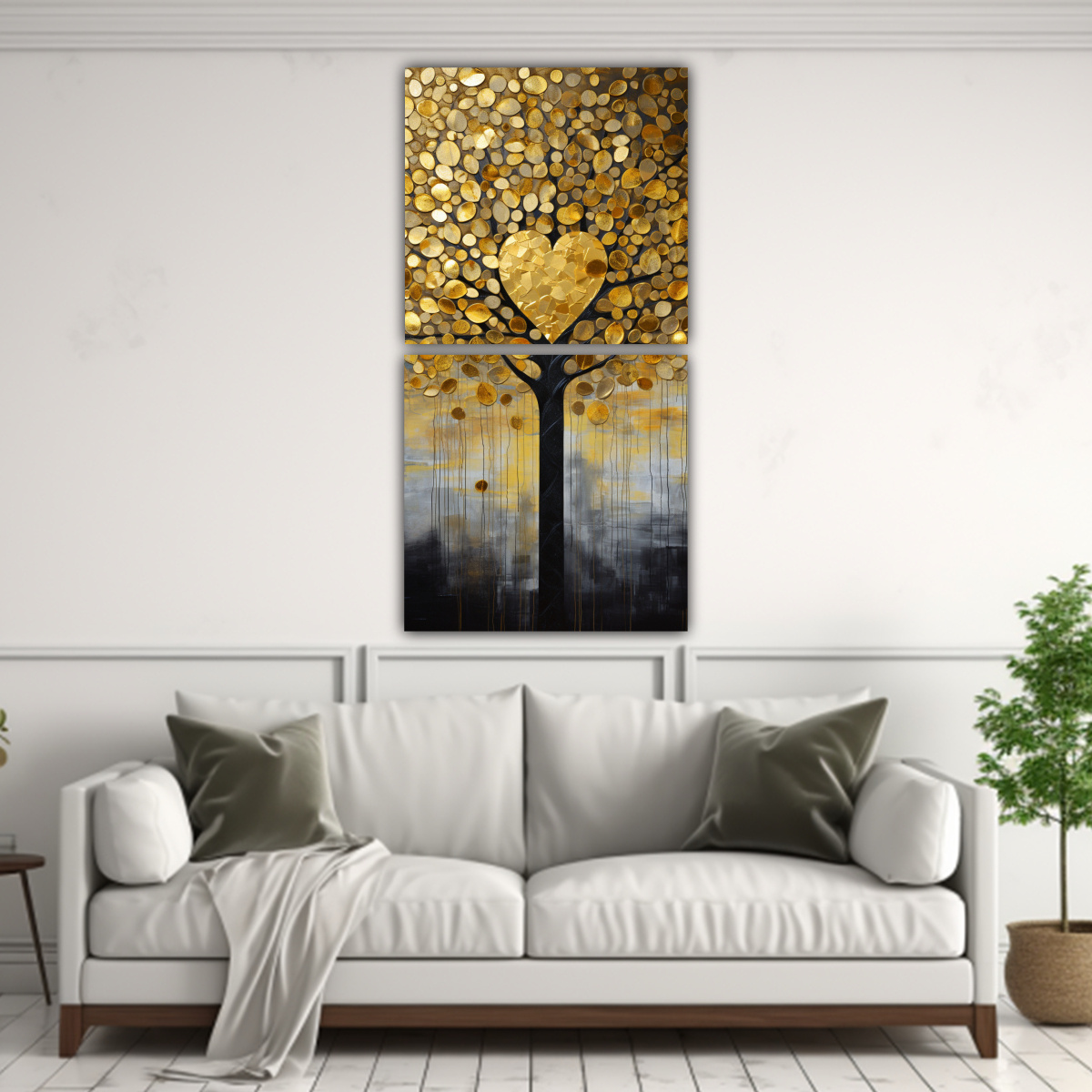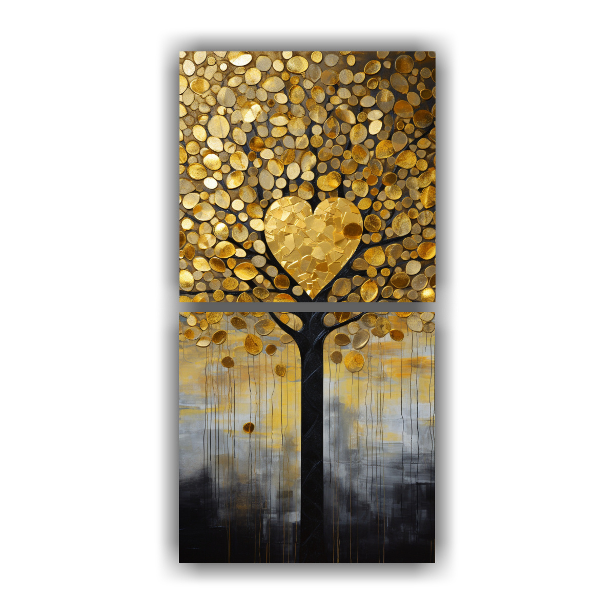 Descubre el Conjunto 2 Composiciones Alta Calidad para Cuarto con Árbol Dorado y Amarillo en DecoCuadros La mejor calidad y los precios más económicos del mercado Envío gratis en Santiago y envíos express a regiones