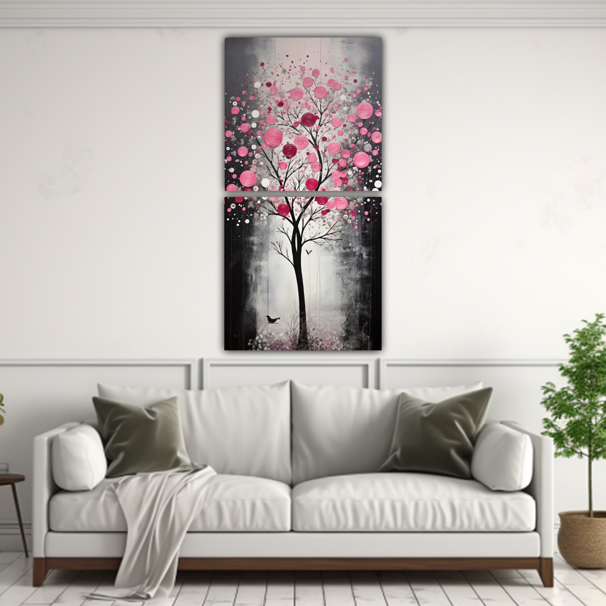 Decora tus paredes con el Conjunto 2 Composiciones Dibujo Época árbol rosa y plata, cuadros impresos en tela de alta calidad Diseños exclusivos y entrega rápida en Santiago