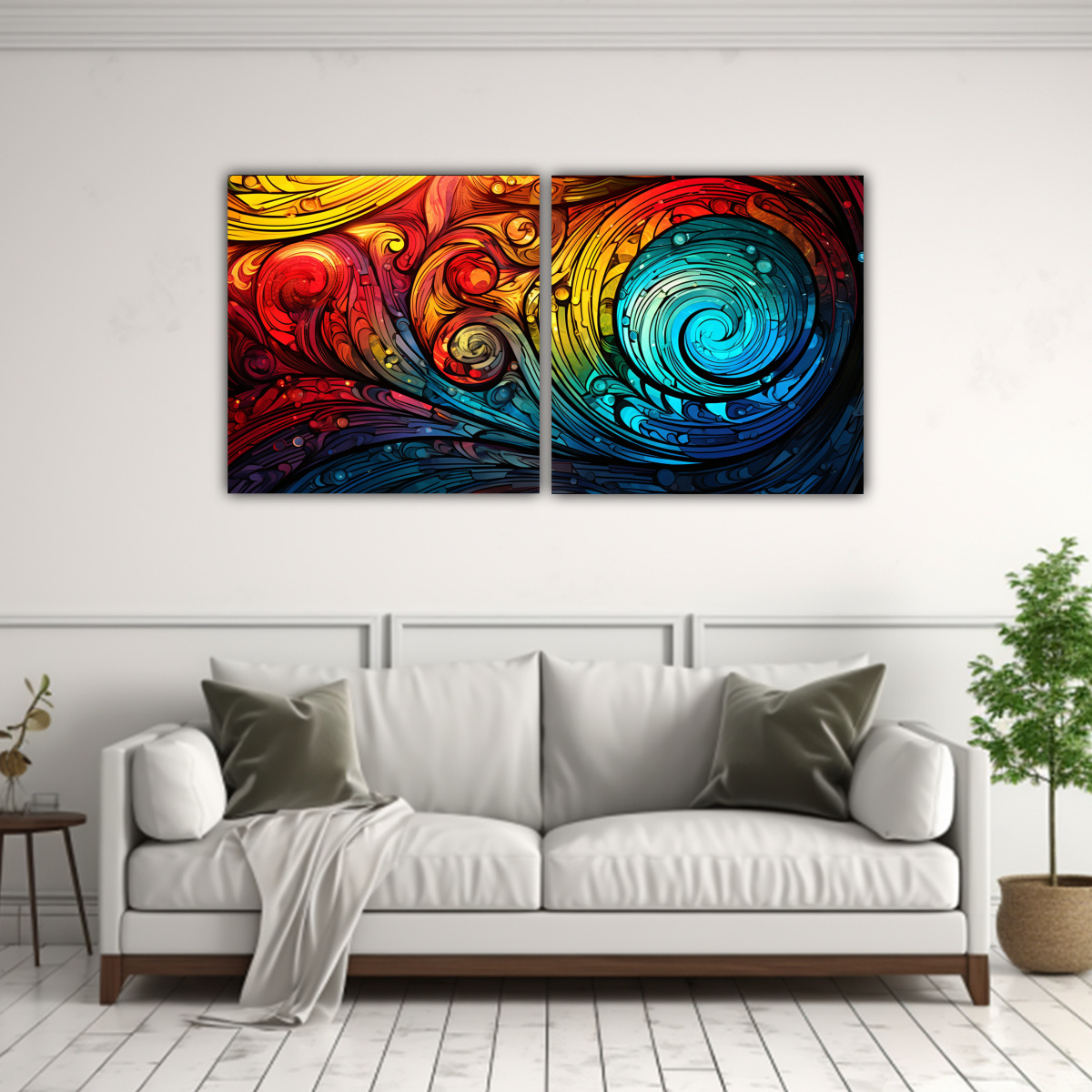 Conjunto 2 Composiciones Tela Sublimada Arte Abstracto Geometría Diseño