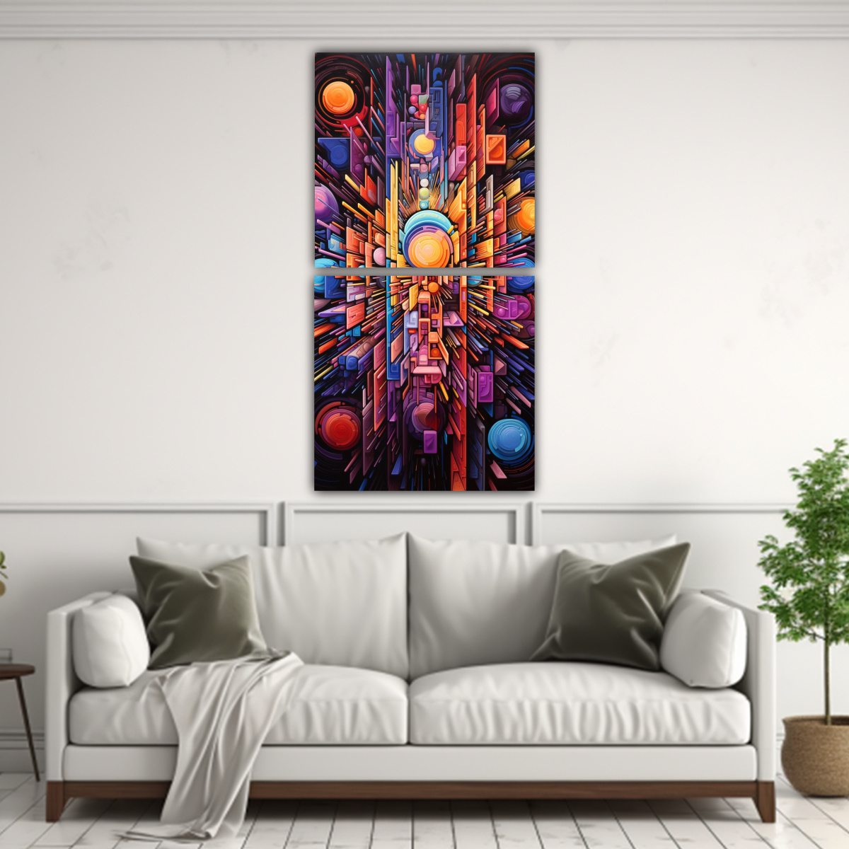 Coloca el Conjunto 2 Cuadros Abstractos de Alta Calidad Intensos con Visiones Kaleidoscópicas en tu sala de estar para crear un ambiente moderno y vibrante Combínalos con muebles en tonos neutros para resaltar sus colores intensos y deja que se conviertan en el centro de atención de tu espacio ¡Te encantará el resultado!