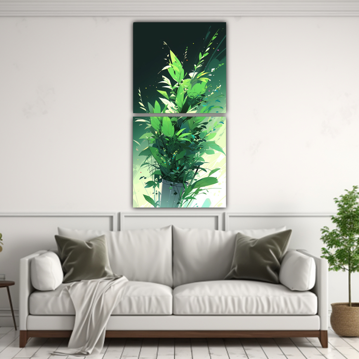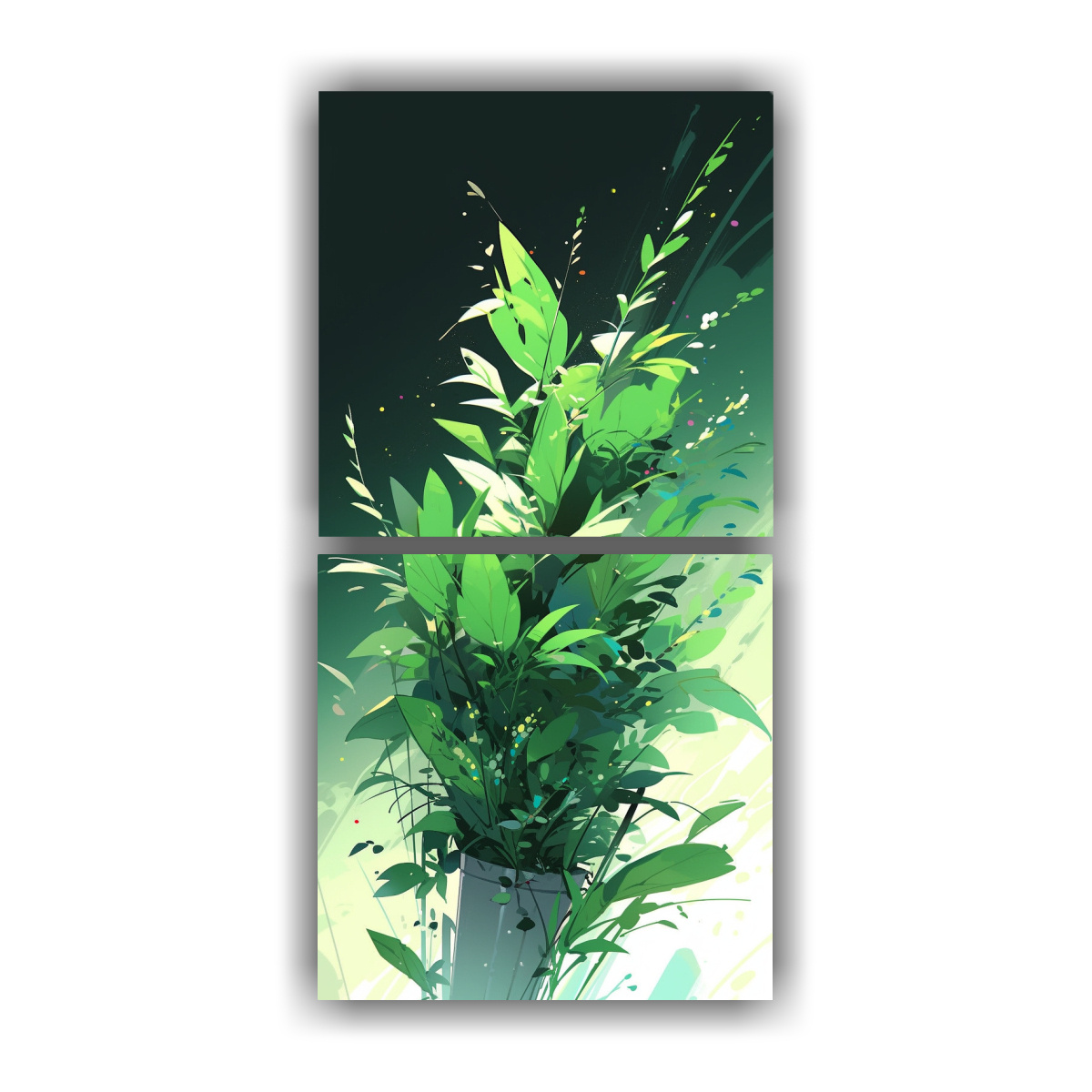 Conjunto 2 Cuadros De Pared Lienzo Lineales Colores Verdes Atmósfera NeoNoir Estilo Mediano.