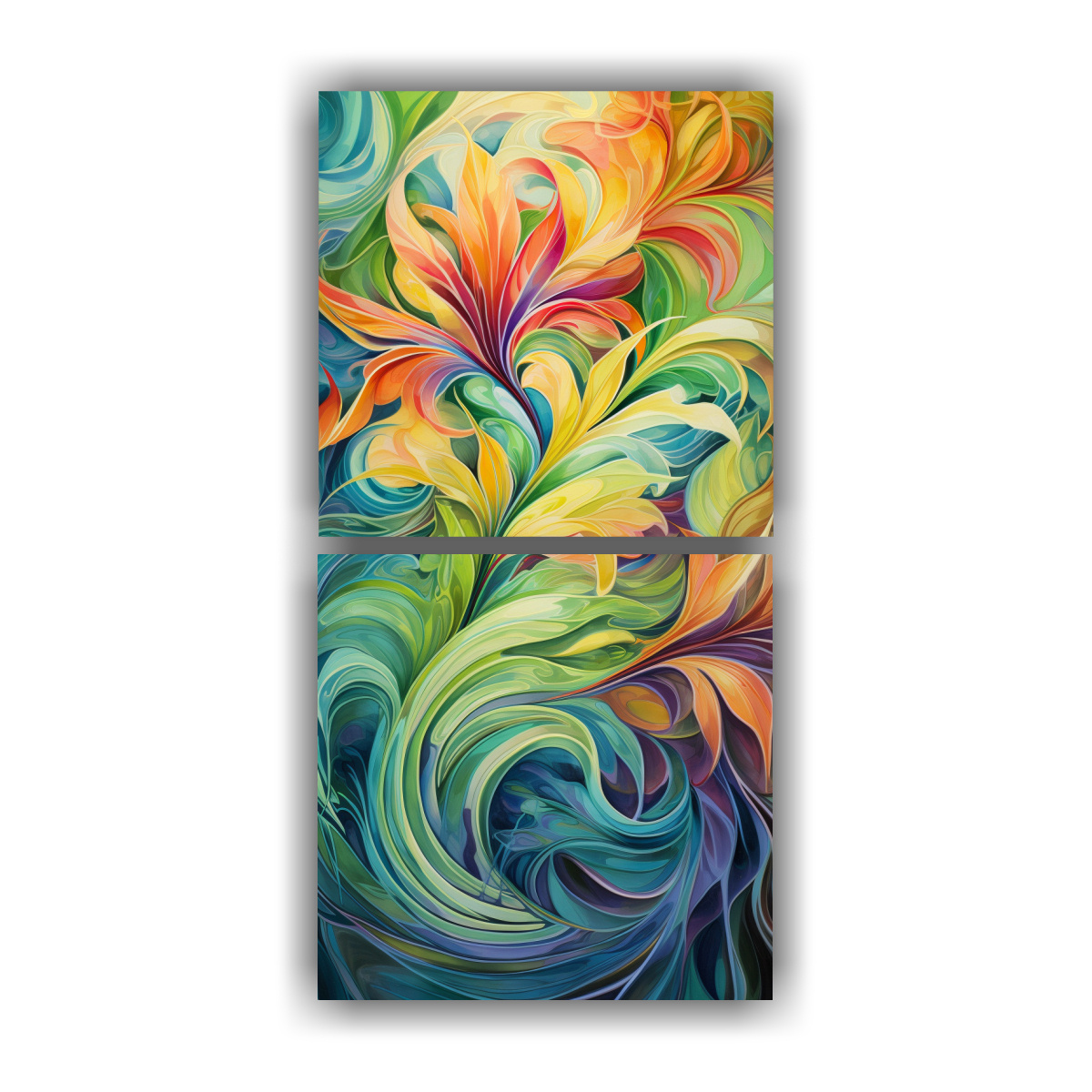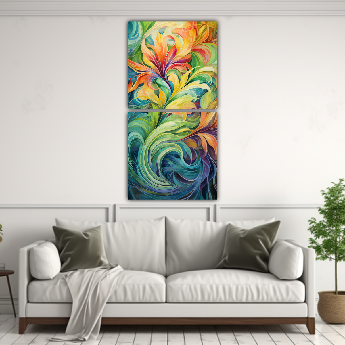 Conjunto 2 Cuadros Decorativos De Arte De Pared Abstracto Giratorio En Patrones Exuberantes Y Tropicales