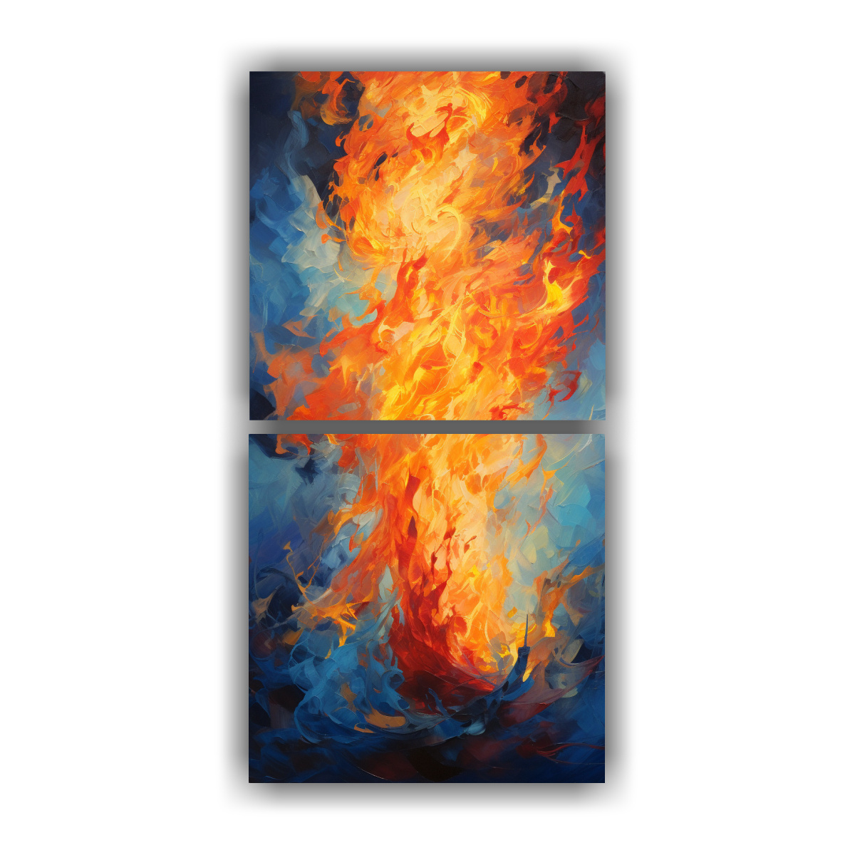 Conjunto 2 Cuadros Inspiración Intrincada Danza Abstracta Del Fuego En Una Hoguera Pinturas De Decoración