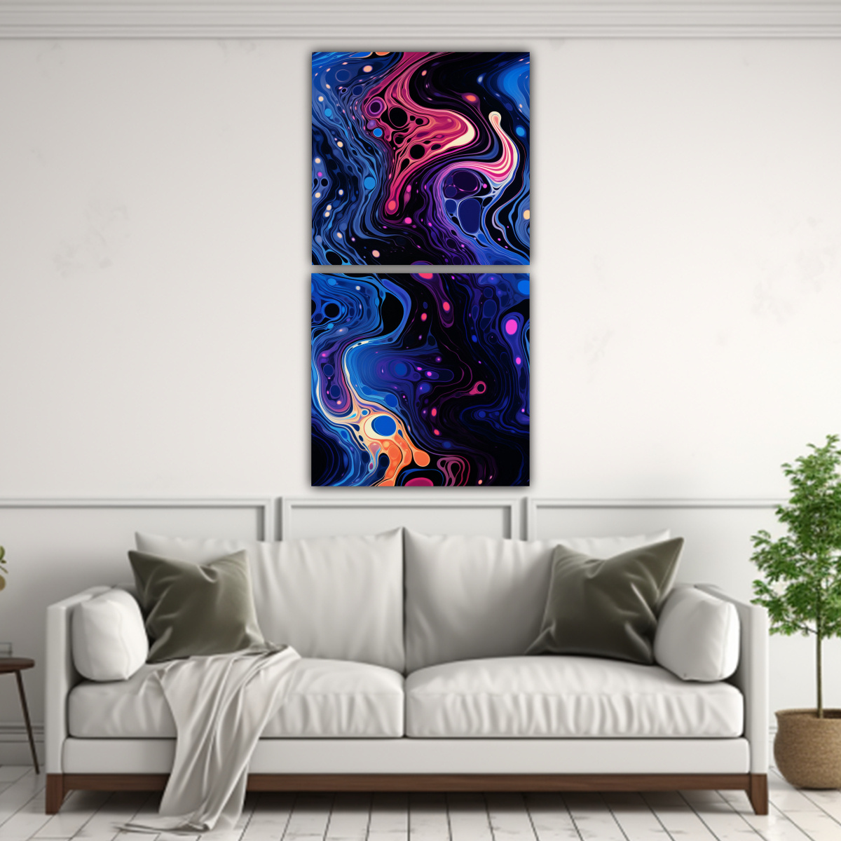 Conjunto 2 Cuadros Verticales Ambiente Tintes Líquidos Psicodélicos Abstractos Oscuros