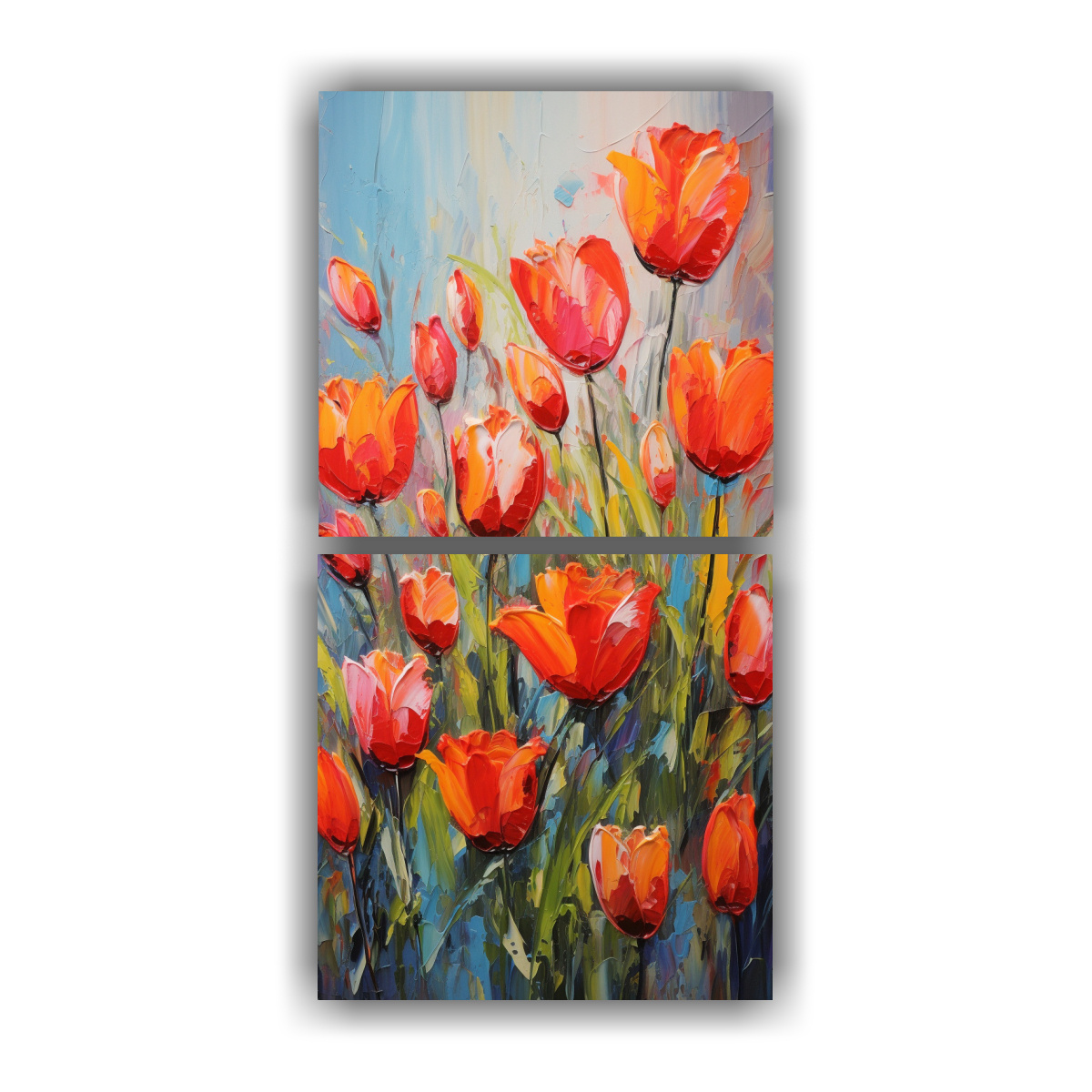 Conjunto 2 Lienzos De Tela Imagen Luminosidad Tulipanes En Colores Vibrantes En Pintura Sobre Lienzo Para Decoración