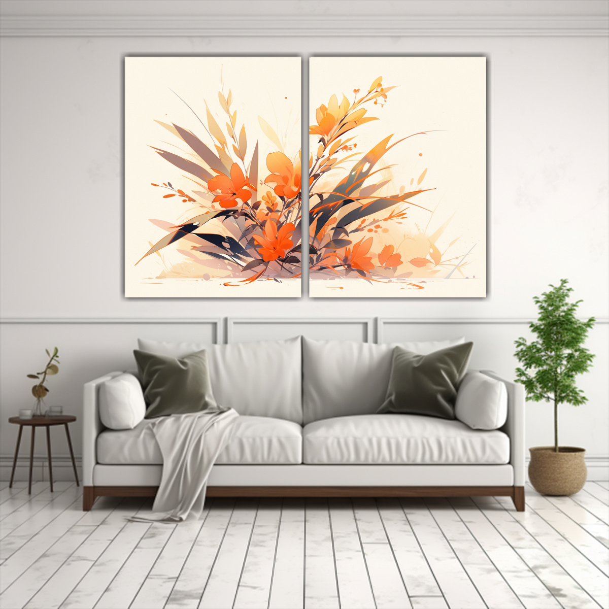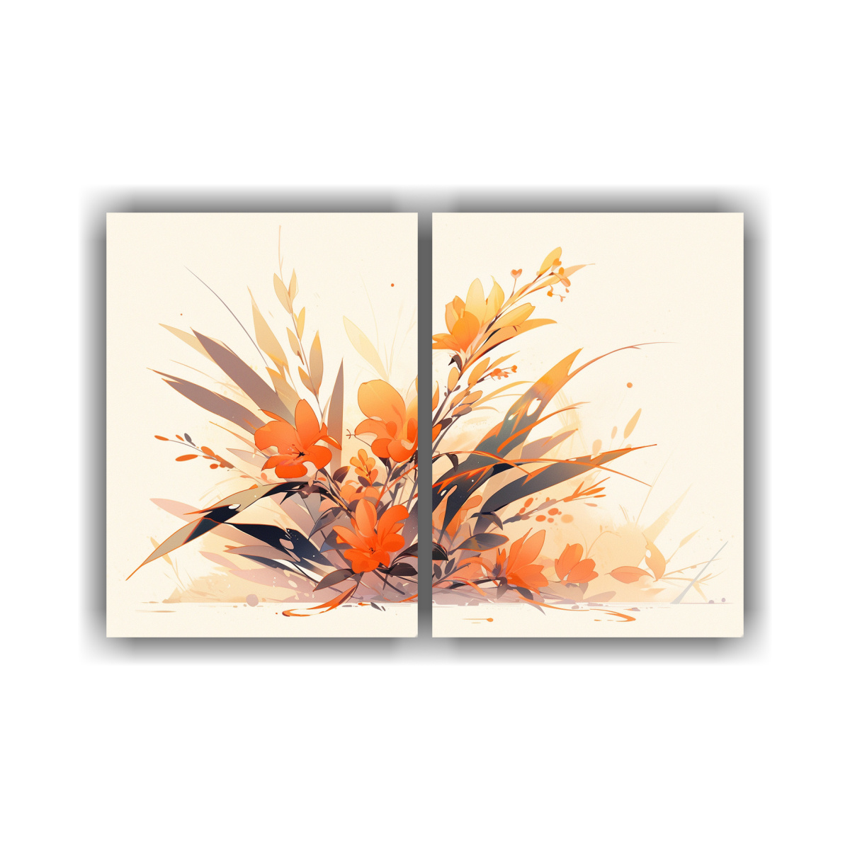 Conjunto 2 Lienzos Tela Movimiento Personalidad Colores Naranja Atmosfera Neonoir