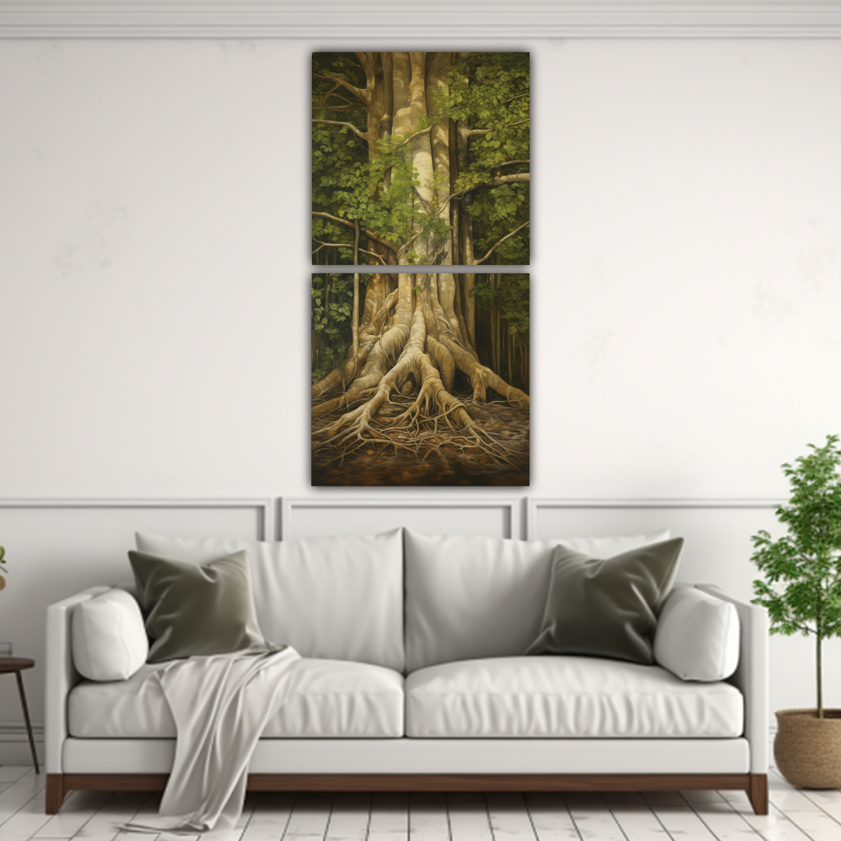 Conjunto 2 Lienzos Tela Tema Dormitorio Árbol Banyan Pintura Abstracta Estilo óleo Detallado