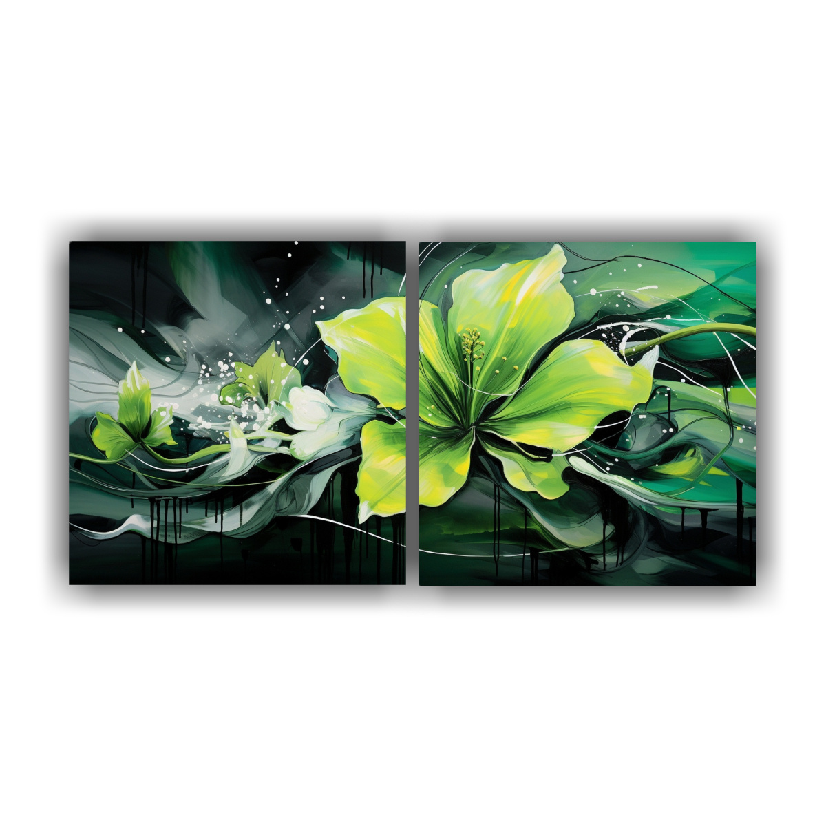 Conjunto 2 Pinturas Decorativas Con Estilo De Pincel Medio De Abstracción Fantasía Y Atmósfera Neonoir.