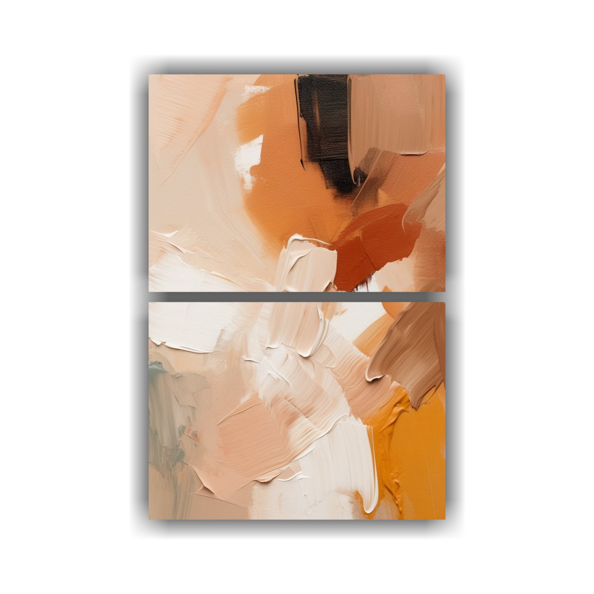 Conjunto 2 Telas Bastidor Acuarela Relieve Cálidos Tonos Neutros Minimalista Abs
