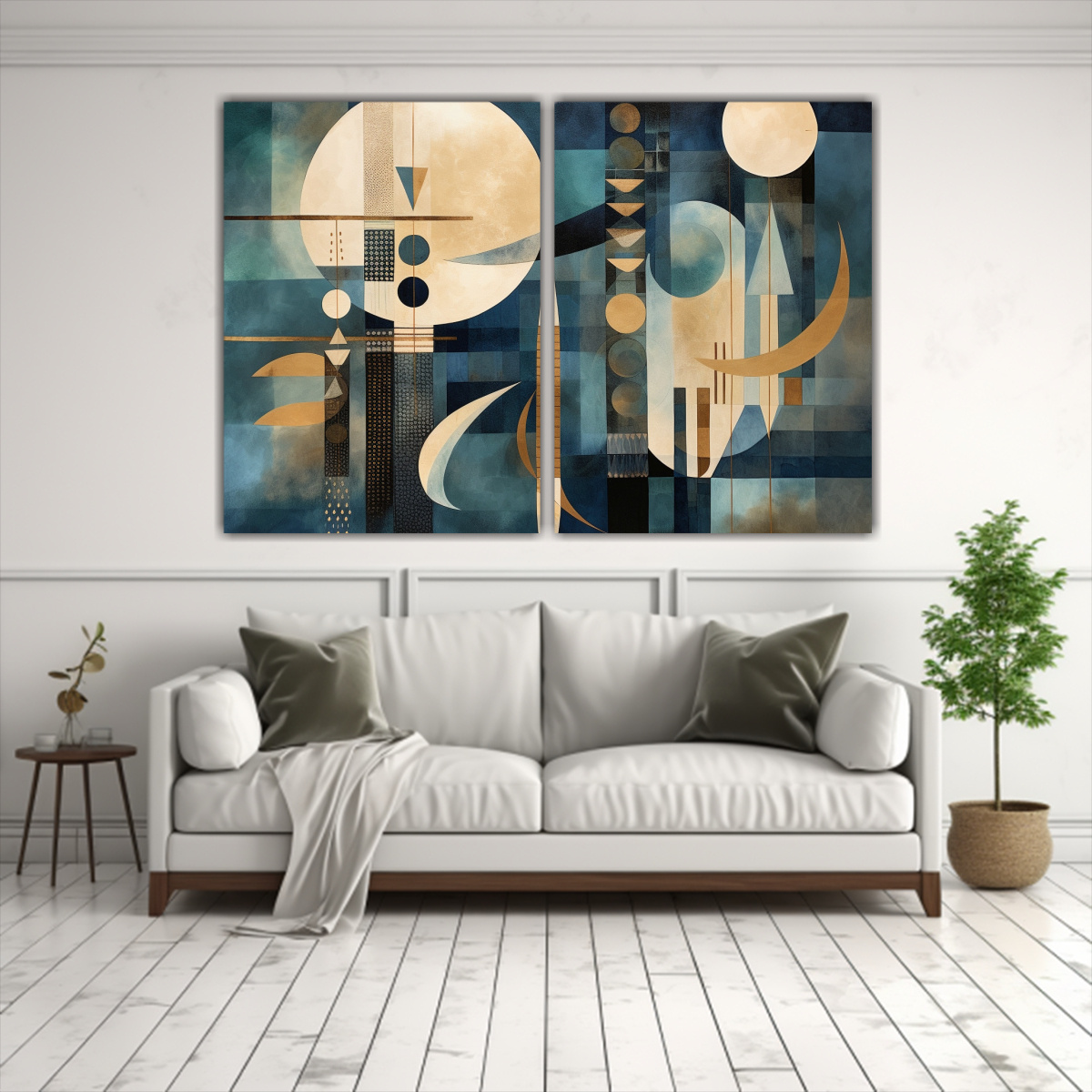 Conjunto 2 Telas Bastidor Duradero Estilo Boho Abstracto Geométrico Azul