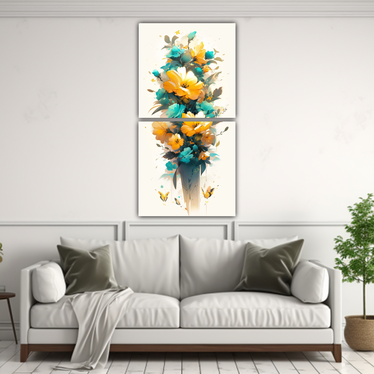 Conjunto 2 Telas Bastidor Impreso Comedor Amarillo Y Turquesa Atmosfera Neonoir En Decoración Pinturas