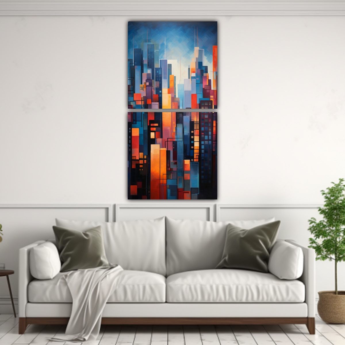 Coloca el conjunto 2 telas bastidor inspiración estética en tu sala de estar o estudio para crear un ambiente vibrante y moderno Combínalo con muebles en tonos neutros como blanco o gris, y agrega algunos elementos decorativos en colores complementarios como verde o amarillo ¡El resultado será un espacio lleno de energía y estilo!