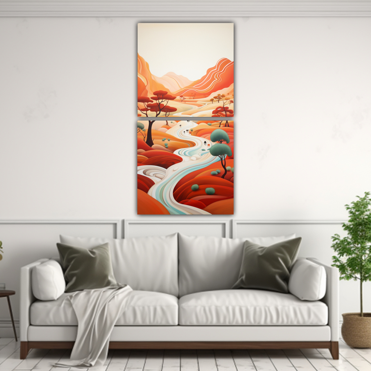 DecoCuadros te ofrece el Conjunto 2 Telas en Bastidor Imagen Simétrico Abstracto, creado con una reimaginación vibrante de la Ruta de la Seda Disponible en colores Carmesí, Coral, Beige, Gris, Plateado y Dorado Envío gratis en Santiago y envíos express a regiones