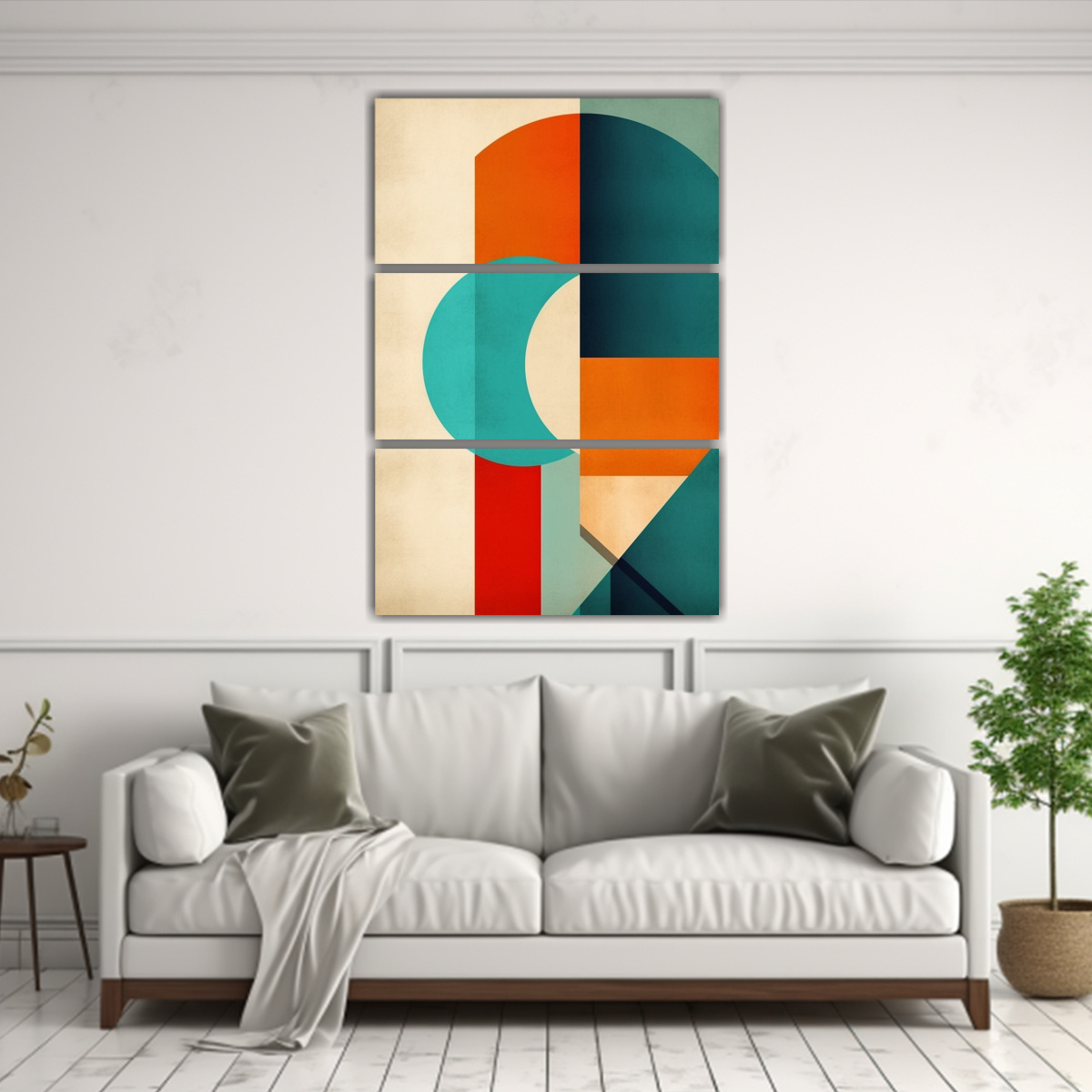 Este conjunto de arte geométrico sería perfecto para decorar una sala de estar moderna Colócalos en una pared vacía junto a un sofá gris claro para crear un contraste interesante Complementa con cojines en tonos Azul Marino grisaceo, Coral y Plateado para lograr una armonía de colores ¡Agrega estilo y personalidad a tu espacio con estos cuadros!