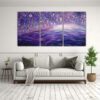 Este conjunto de cuadros decorativos en tonos plateados, azules y lilas sería perfecto para darle un toque elegante a un salón o dormitorio Combínalos con muebles blancos o grises para resaltar su luminosidad