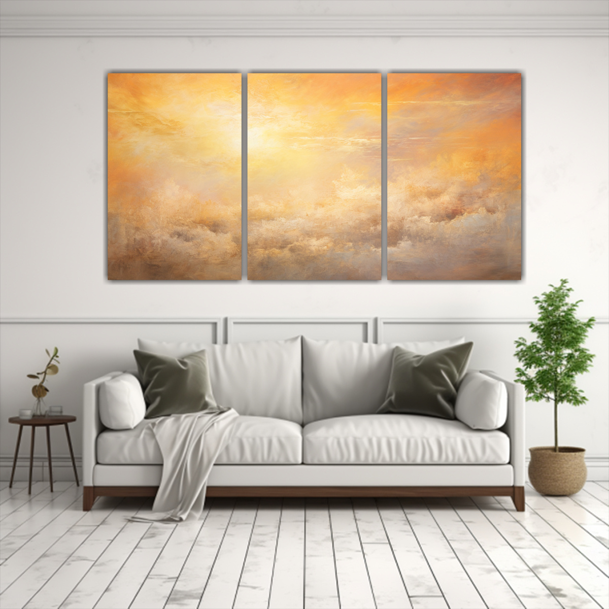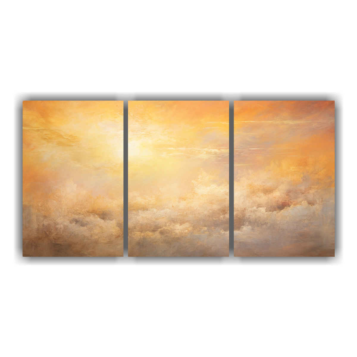 Conjunto 3 Cuadros Abstractos Armonía De Colores Cielos Al Amanecer Y Atardecer Con Tonos Dorados