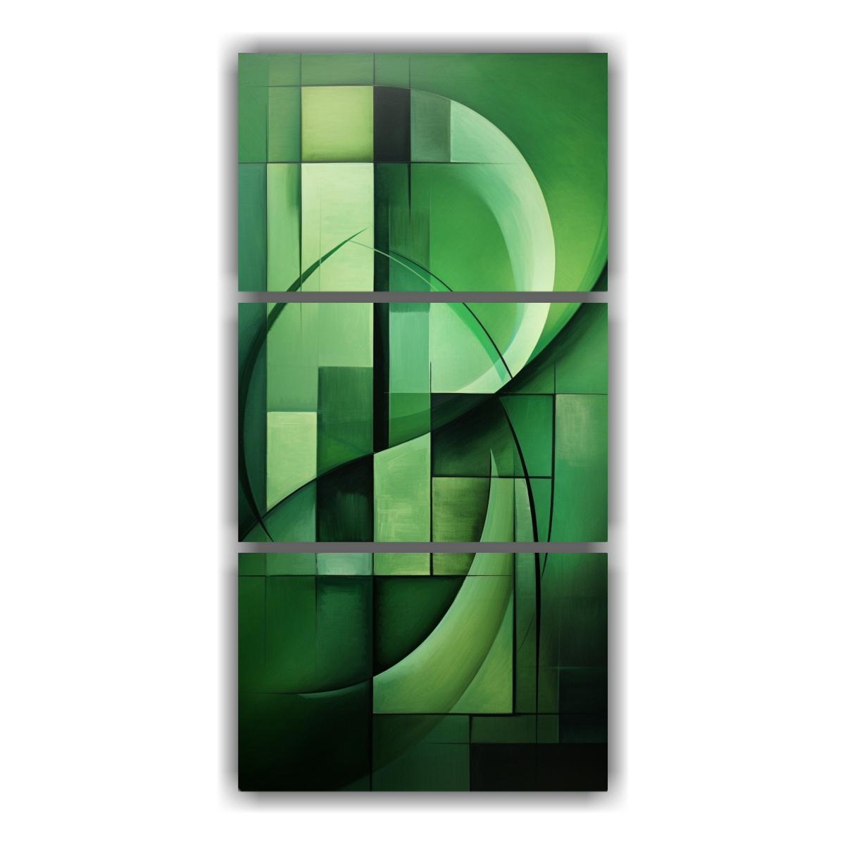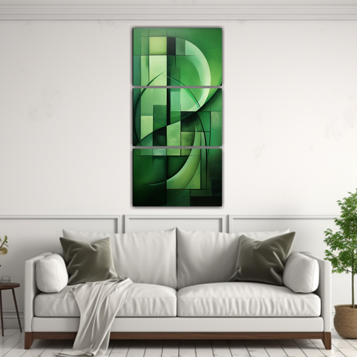 Conjunto 3 Cuadros Abstractos Verdes Para Decoración De Pared