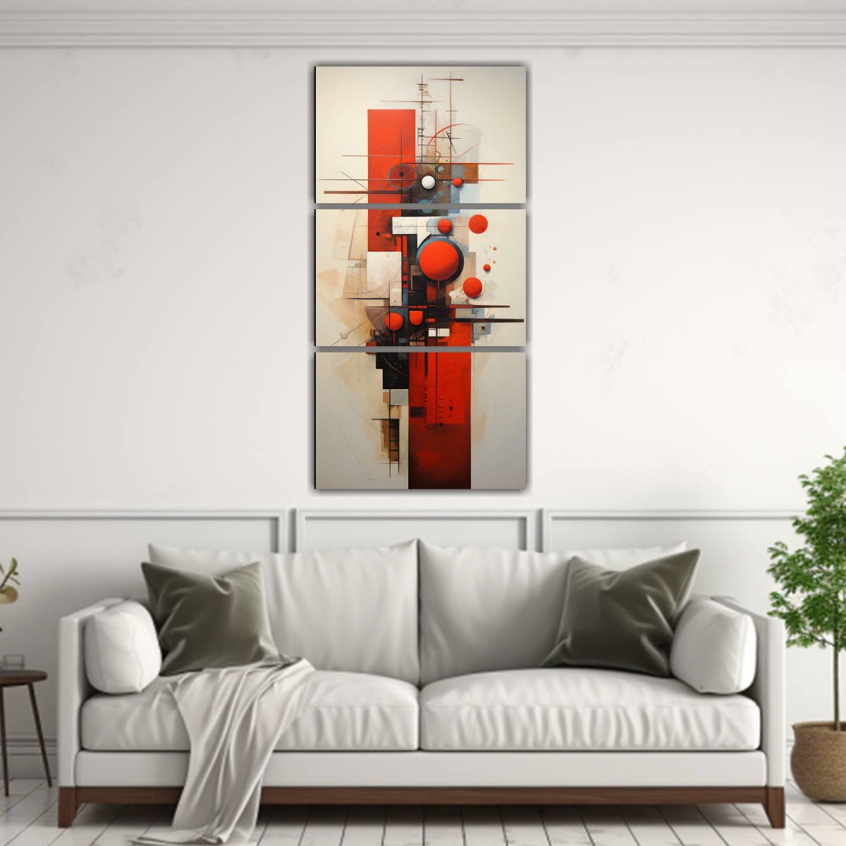 Este conjunto de 3 cuadros abstractos en colores Carmesí, Plateado, Azul Marino Grisáceo, Dorado, Gris y Beige es perfecto para decorar tu sala de estar o dormitorio Puedes colocarlos juntos en una pared vacía para crear un impacto visual, o distribuirlos en diferentes áreas de la habitación Combínalos con muebles en tonos neutros para resaltar su belleza y crear un ambiente moderno y elegante