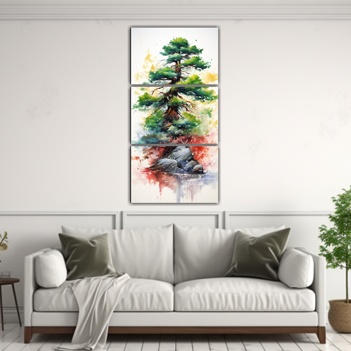 Conjunto 3 Cuadros Alta Calidad Árbol Abeto Acuarela Abstracto Colores