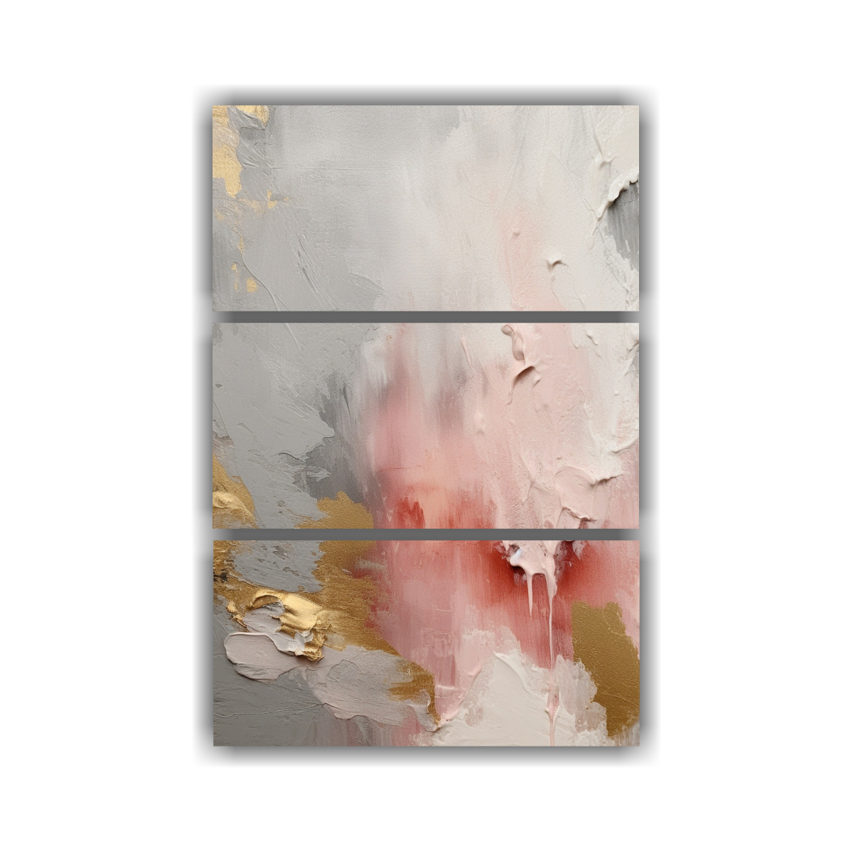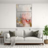 Decora tus espacios con los elegantes Conjunto 3 Cuadros de Tela Abstracto en tonos rosa, gris y blanco sobre gris Diseños exclusivos y calidad garantizada en DecoCuadros Envío express a regiones