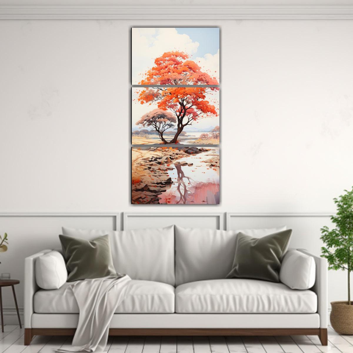 Renueva tu hogar con estos cuadros decorativos de alta calidad con diseño exclusivo de un Árbol Acacia en tonos Rojo y Naranja Envíos rápidos y gratuitos en Santiago, ¡no te los pierdas!
