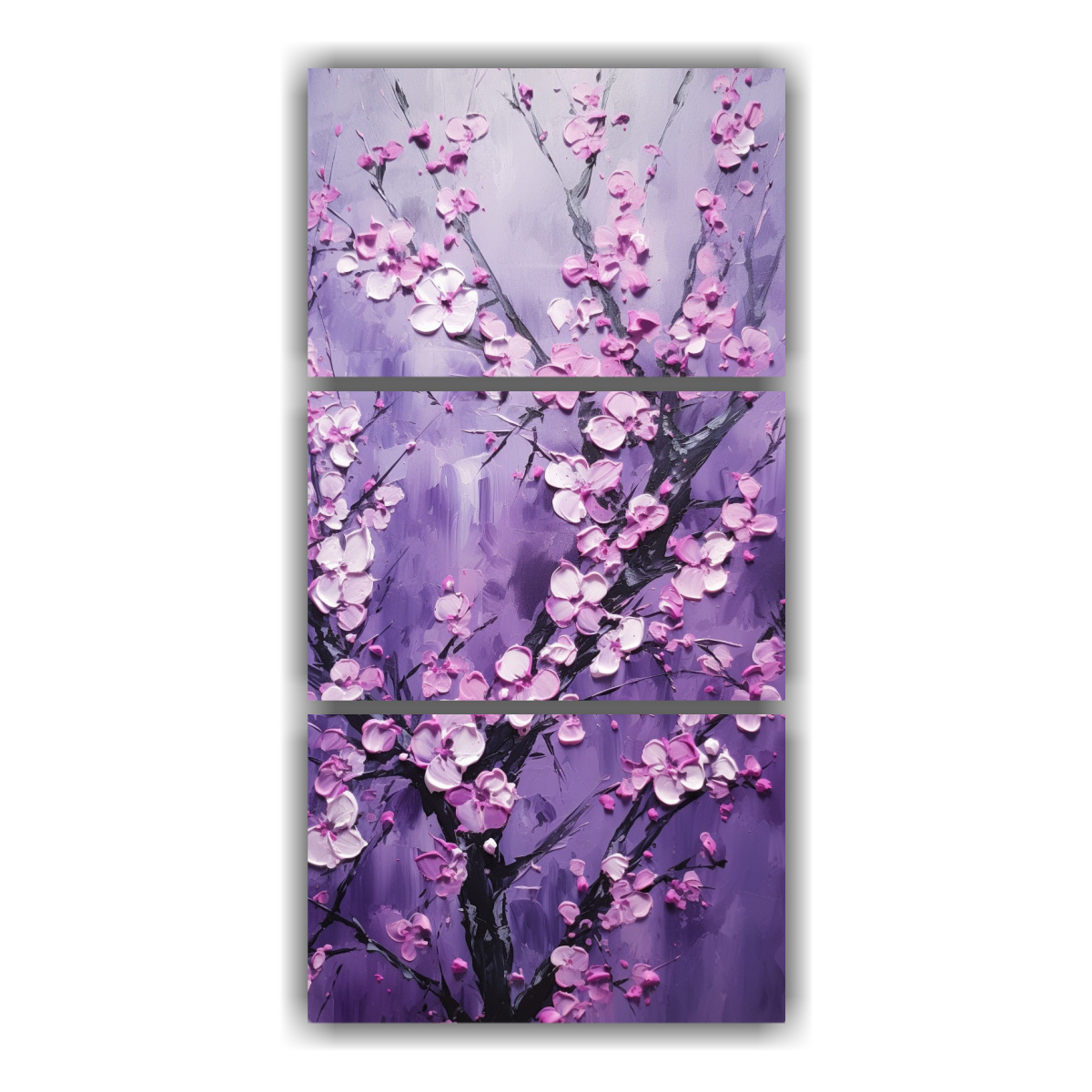 Descubre el Conjunto 3 Cuadros Estilo Galería Flores de Cerezo Morado en Lienzo de DecoCuadros Diseños exclusivos y la mejor calidad del mercado Envío gratis en Santiago y entrega rápida a regiones