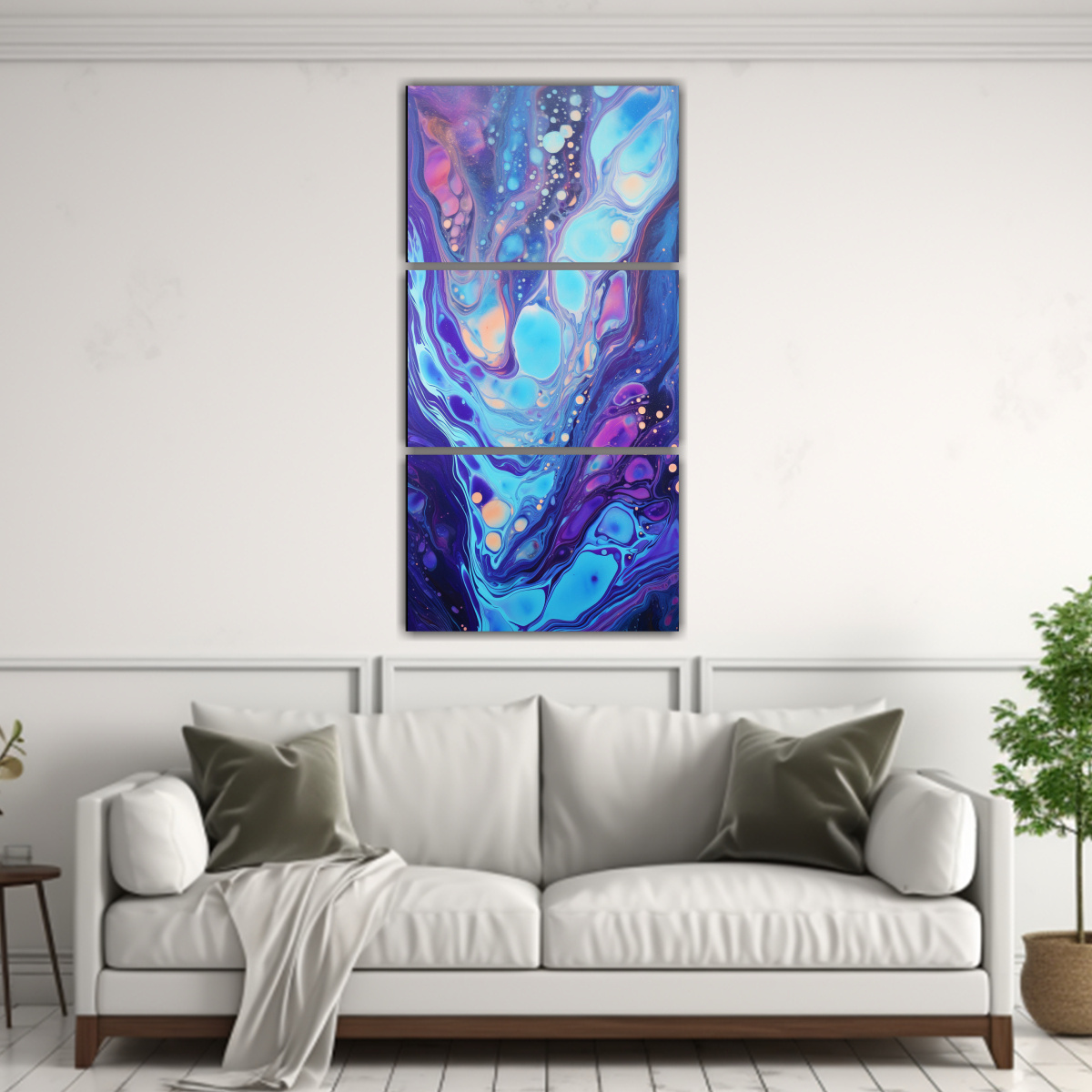 Conjunto 3 Cuadros Estilo Galería Pintura Abstracta Acrílica Efecto Visual Hiperealista.