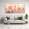 Conjunto 3 Cuadros Fotografía Creatividad Dahlias Flores Dorado Y Rosa Pintura Abstracta.