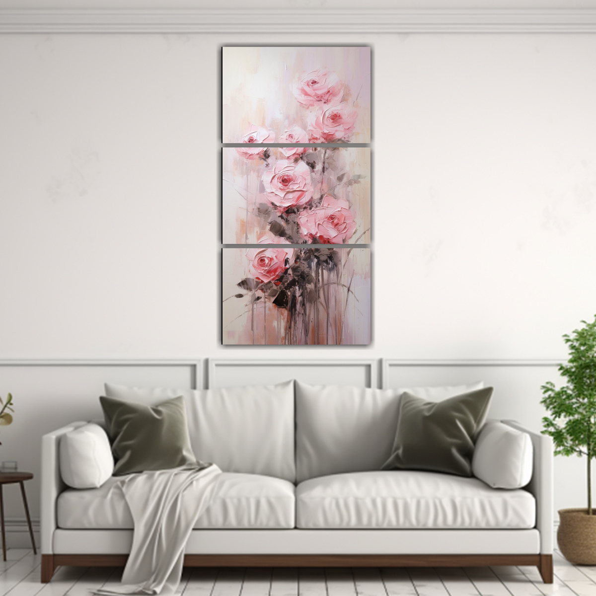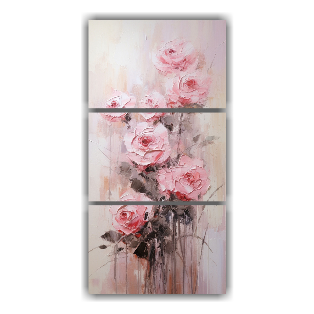 Conjunto 3 Cuadros Imagen Rosas Rosa Exuberantes En Lienzo Estilo P.