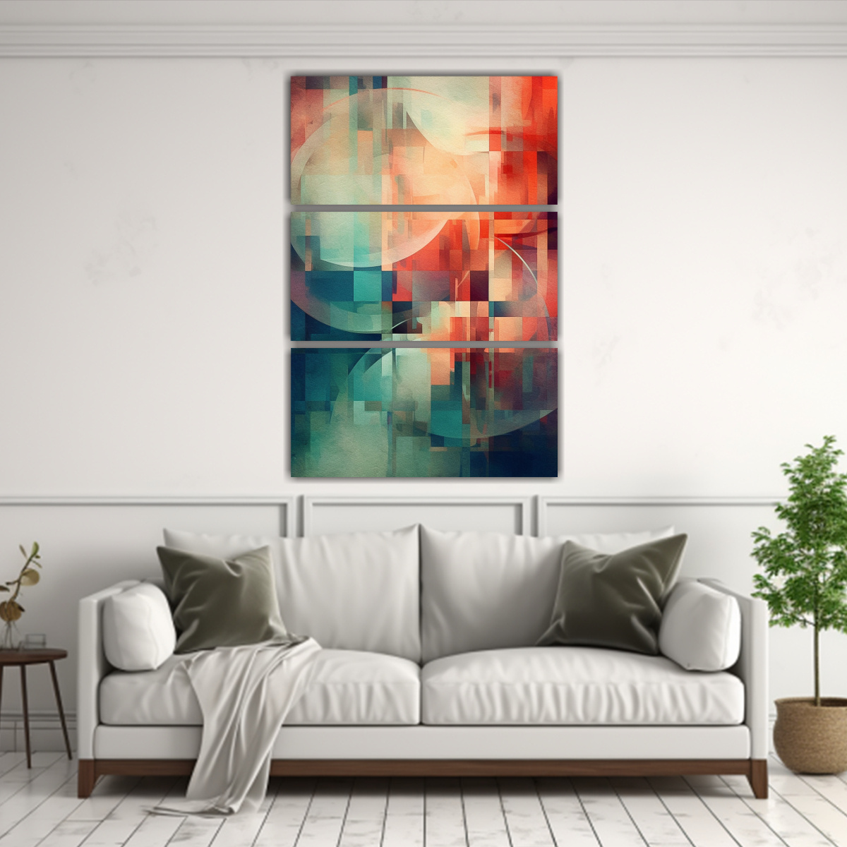 Conjunto 3 Cuadros Impactante Arte Abstracto Digital Colores Desvanecidos