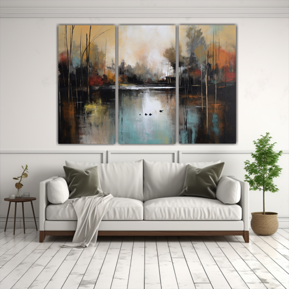 Conjunto 3 Cuadros Inspiración Paisaje Abstracto Estilo