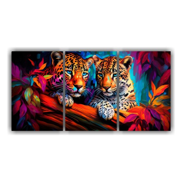 Conjunto 3 Cuadros Leopardo Estilo Pintura Al Estilo Óleo Colorida Profundidad 21 V 52