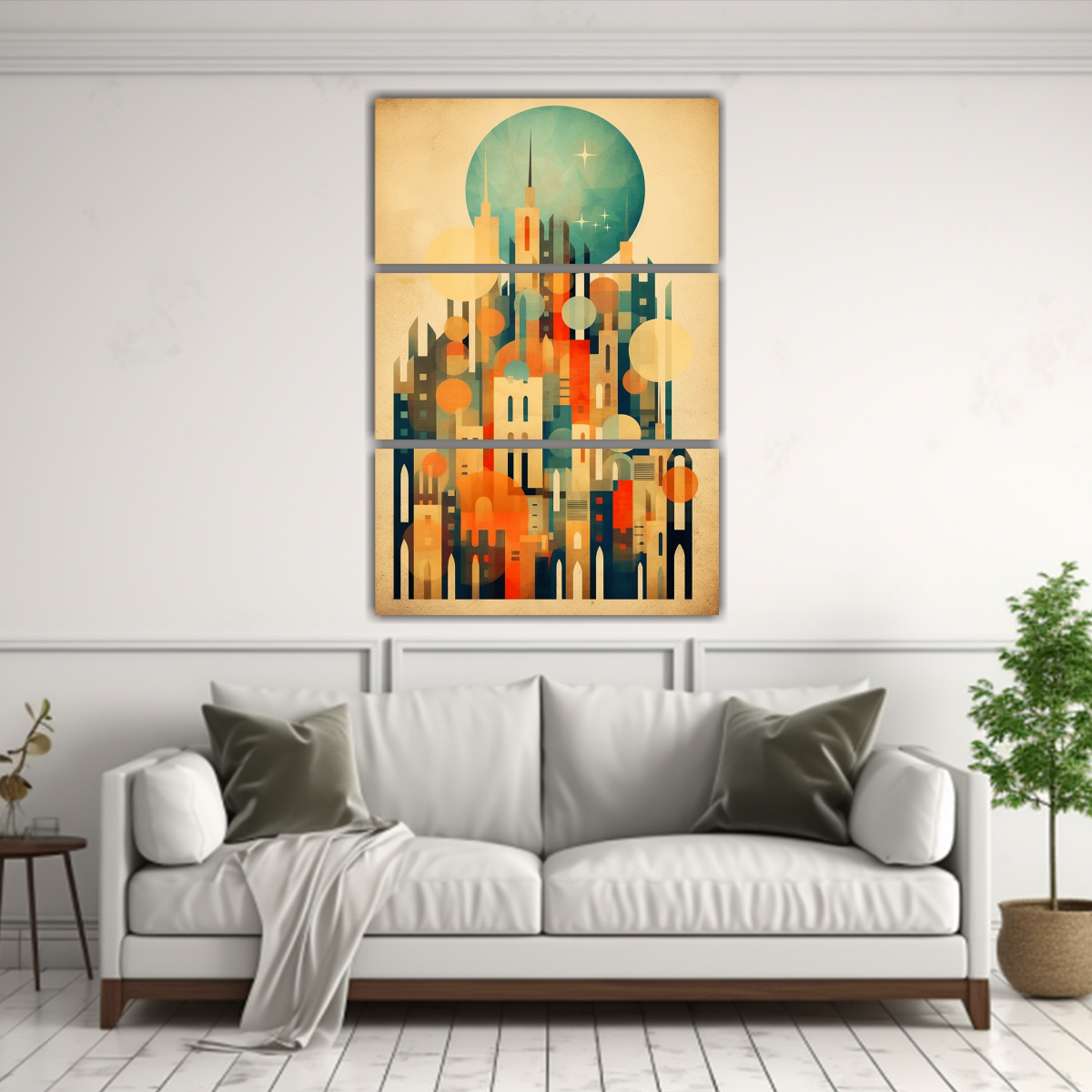 Conjunto 3 Cuadros Lienzo Patrón Intenso Moderno Boho Formas Ciudad Decoración